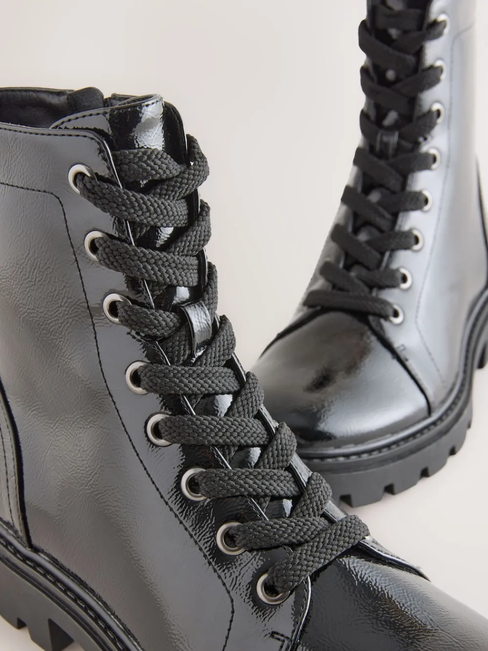 Next Black Patent Extra Wide Fit Forever Comfort® Lace-Up Boots Outlet