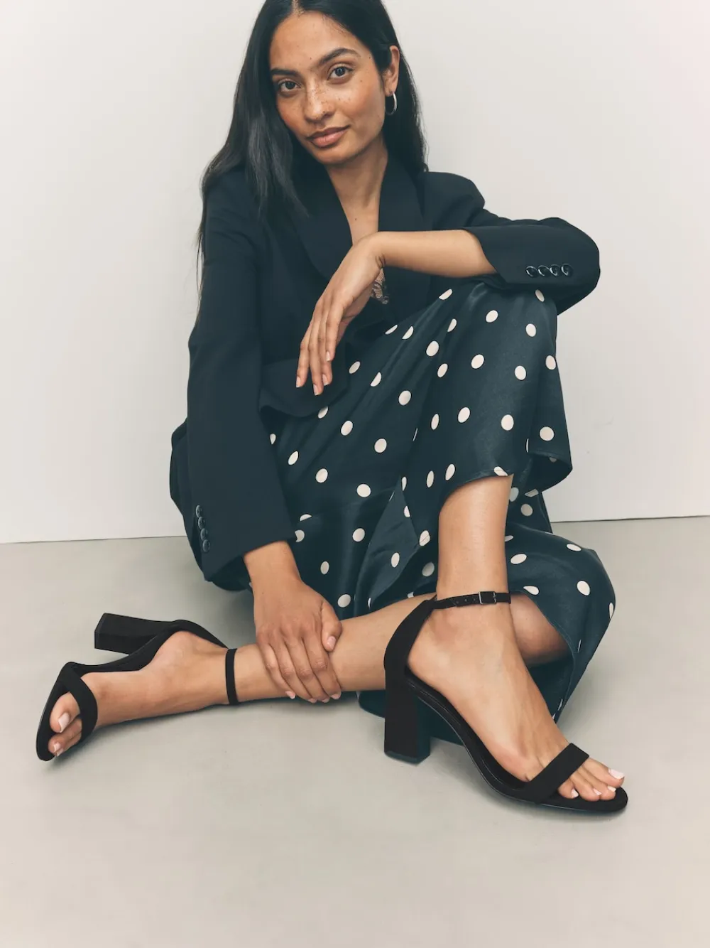 Dance the night away in these stunning block heel sandals. The simple yet elegant design features a wide strap across the toes and a delicate adjustable ankle strap. Designed for long-lasting comfort, the block heel provides stability, and the Forever Comfort® sole offers a cushioned feel, making them perfect for special occasions. Adjustable ankle strap Block heel Forever Comfort® sole Two-strap design Heel height 8.5cm. Upper – Textile, Lining & Sock – Other Materials, Sole – Other Materials.