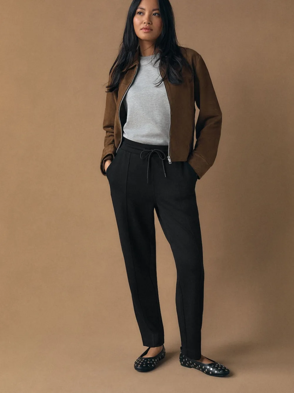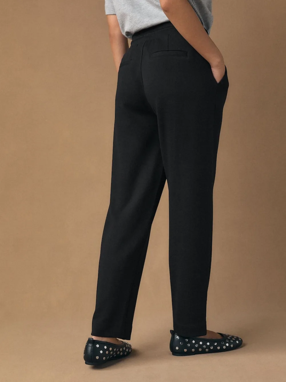 Stay stylishly comfortable in these black tapered jersey joggers, designed for a blend of relaxed loungewear and contemporary fashion. Cut in a flattering fitted shape, these joggers are crafted from a soft jersey fabric that offers all-day comfort. The clean, minimalist design is elevated with premium metal-ended drawstrings and a tapered leg, making them a versatile addition to your off-duty wardrobe. Tapered silhouette Elasticated drawstring waist Metal drawstring ends Functional side pockets Short to fit inside leg 27″ / 69cm. Regular to fit inside leg 29″ / 74cm. Long to fit inside leg 31″ / 79cm. XL Tall to fit inside leg 33″ / 84cm. Machine washable. 65% Livaeco™ Viscose, 30% Recycled polyester, 5% Elastane. Our tall collection is designed to fit women 5’10” and above. This has been proportionally increased through the body, leg and sleeve to achieve the perfect fit. Available in sizes 8-20.