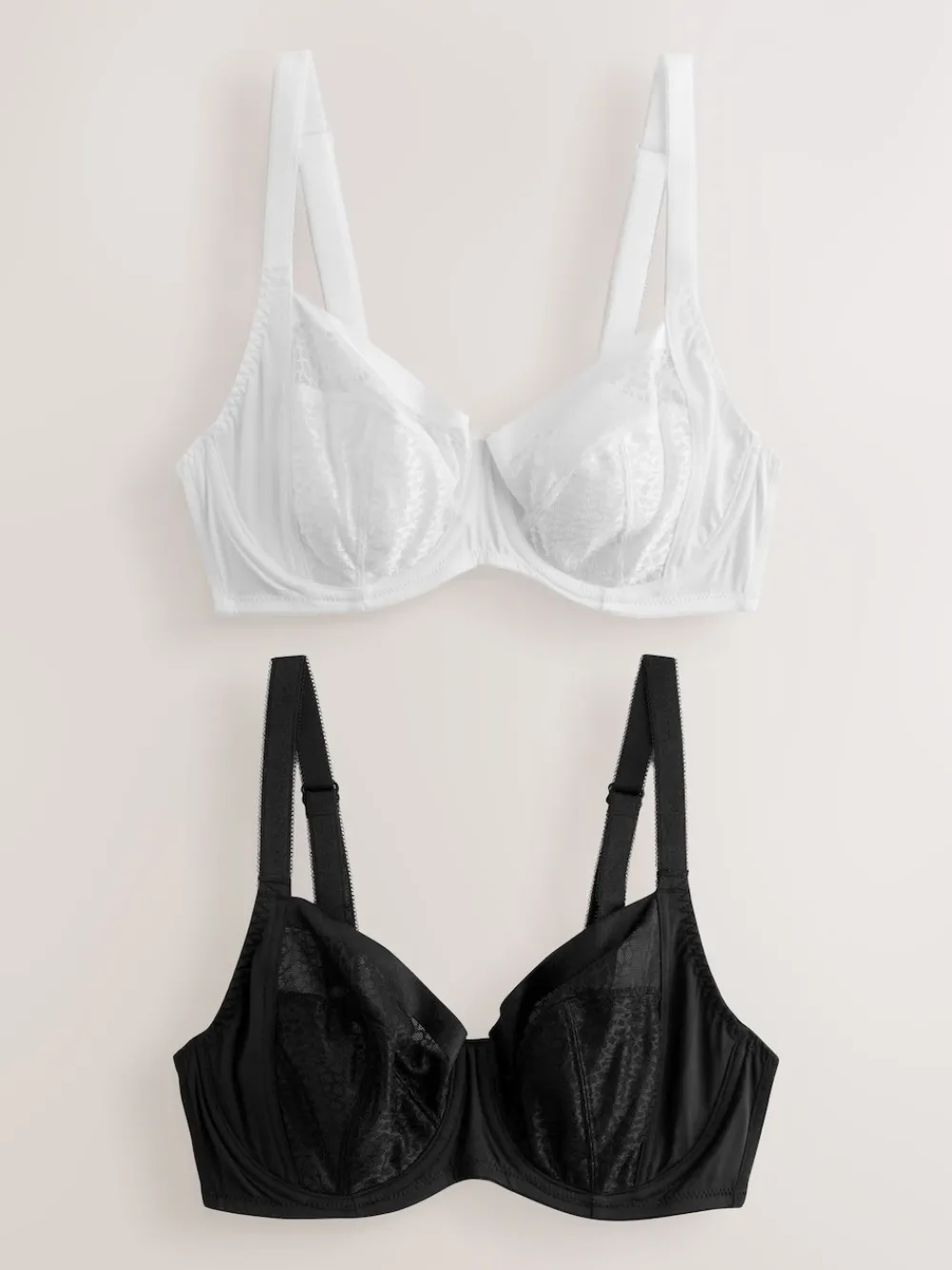 Next Black/White DD+ Non Pad Balcony Smoothing Animal Mesh Underwired With Side Support Bras 2 Pack Clearance
