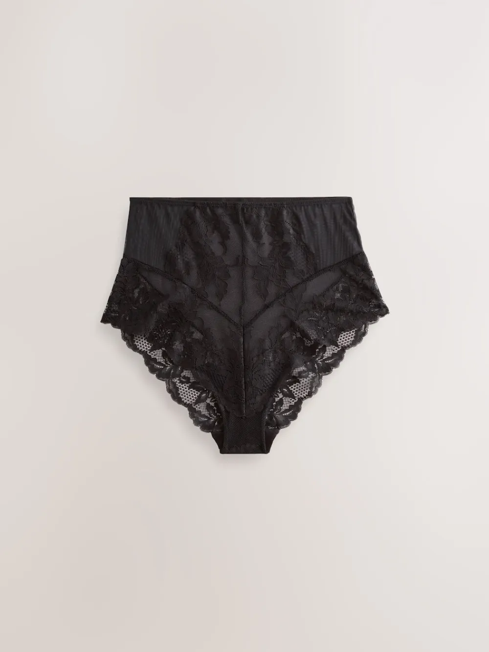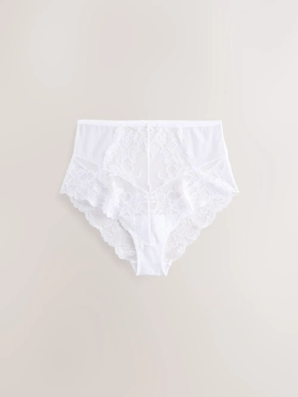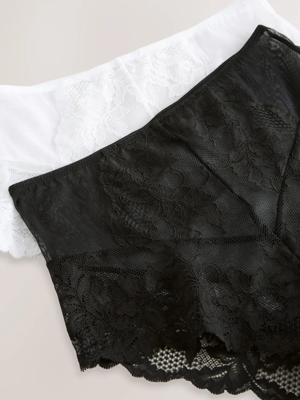 Stock up on your underwear staples with this 2-pack of classic knickers, featuring. High waist High-cut leg Finished with intricate lace detailing Machine washable. 2 x Knickers Main 50% Nylon, 36% Recycled Nylon, 14% Elastane. Gusset 100% Cotton. Items with the curve logo are available in sizes 18 and above.