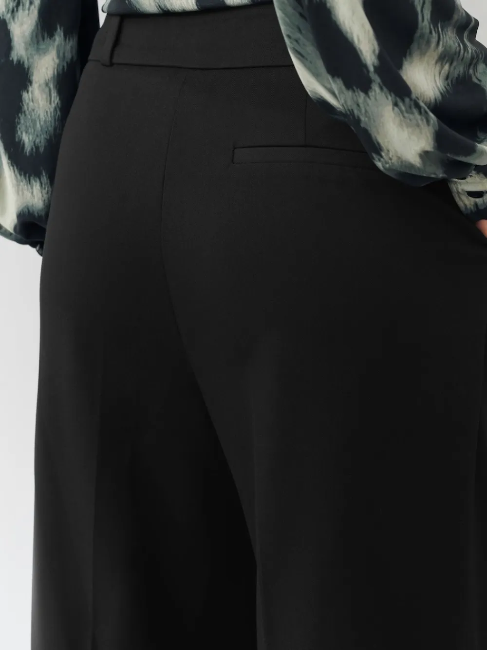 Bring a touch of elegance to your wardrobe with these wide-leg tailored trousers in black. The sleek finish and tailored look create a sophisticated silhouette, while belt loops and side pockets add a practical touch. A versatile piece for work or evenings out, offering both style and comfort. Wide leg Tailored look Belt loops Two side pockets Two back pockets Short to fit inside leg 27″ / 69cm. Regular to fit inside leg 29″ / 74cm. Long to fit inside leg 31″ / 79cm. XL Tall to fit inside leg 33″ / 84cm. Machine washable. 68% Recycled polyester, 30% Viscose, 2% Elastane. Items with the curve logo are available in sizes 18 and above., Our tall collection is designed to fit women 5’10” and above. This has been proportionally increased through the body, leg and sleeve to achieve the perfect fit. Available in sizes 8-20.
