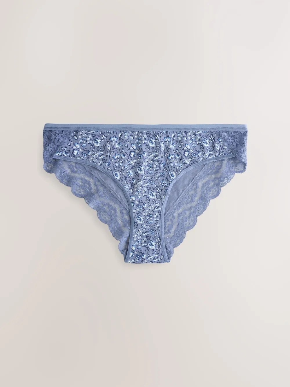 Next Blue Ditsy Floral Bikini Cotton Lace Knickers 4 Pack Outlet