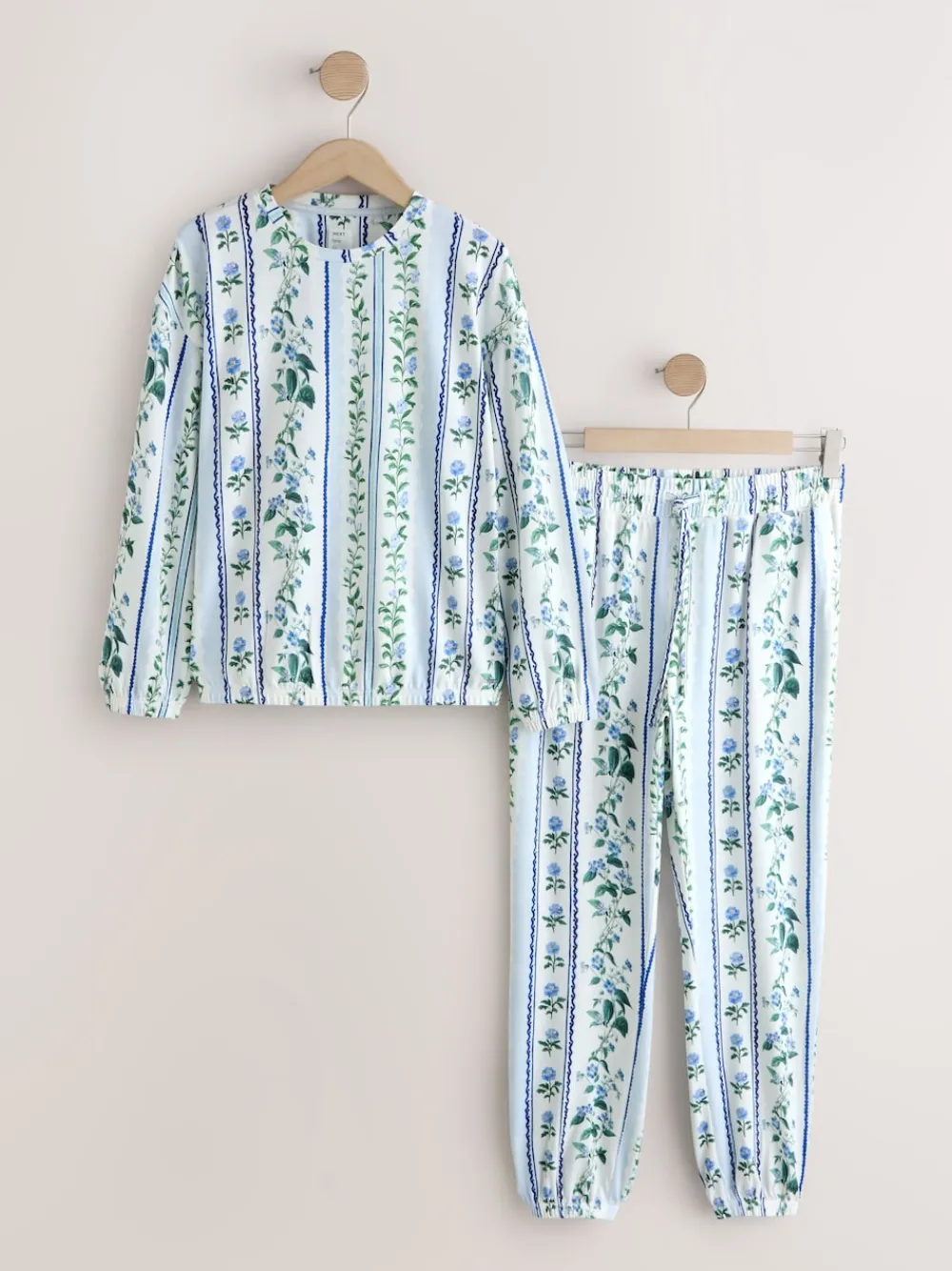 Next Blue Floral Cosy Long Sleeve Pyjamas Outlet