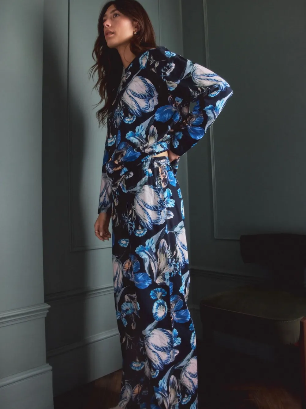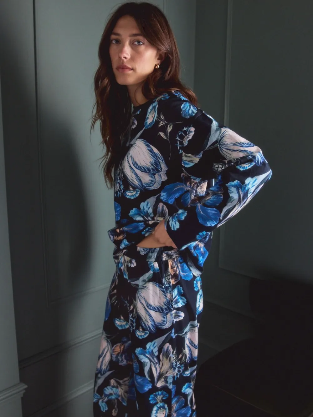 Next Blue Floral Kew Collection Long Sleeve Pyjamas Clearance