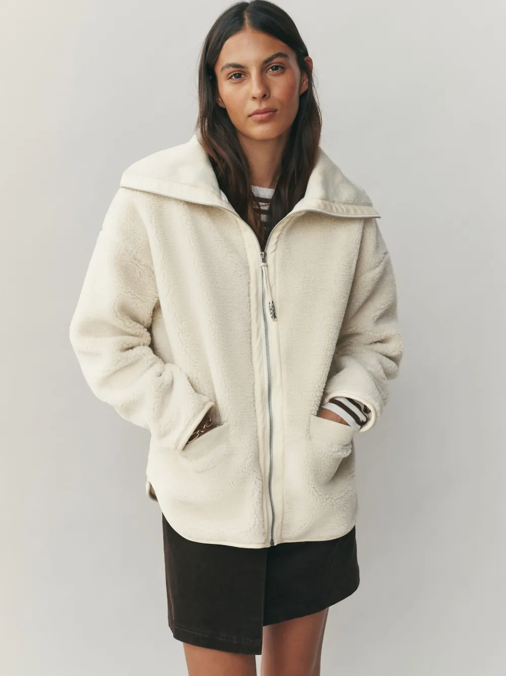 Next Borg Zip Through Fleece With Rib Collar Ecru Best