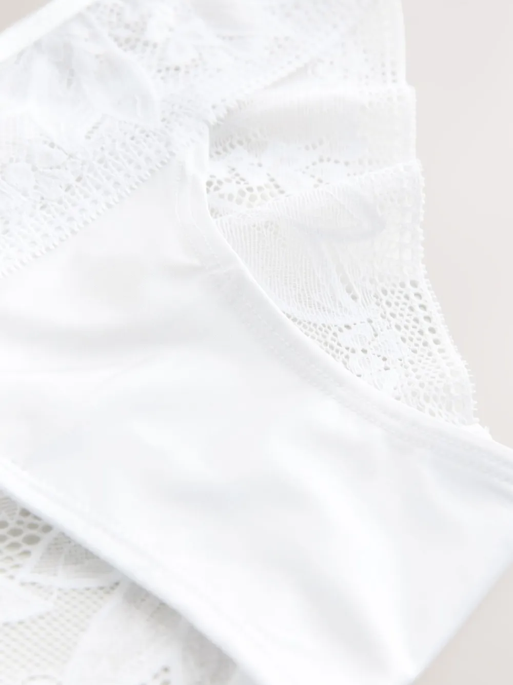 Next Brazilian Lace & Microfibre Knickers 2 Pack White Sale