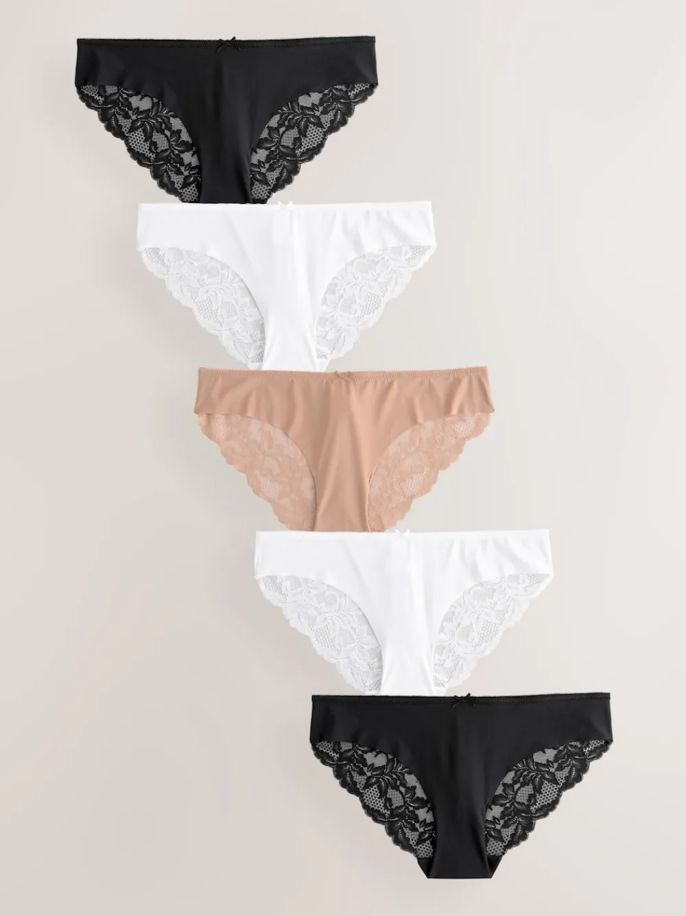 Next Brazilian No VPL Lace Back Briefs 5 Pack Black / White / Praline Nude Outlet