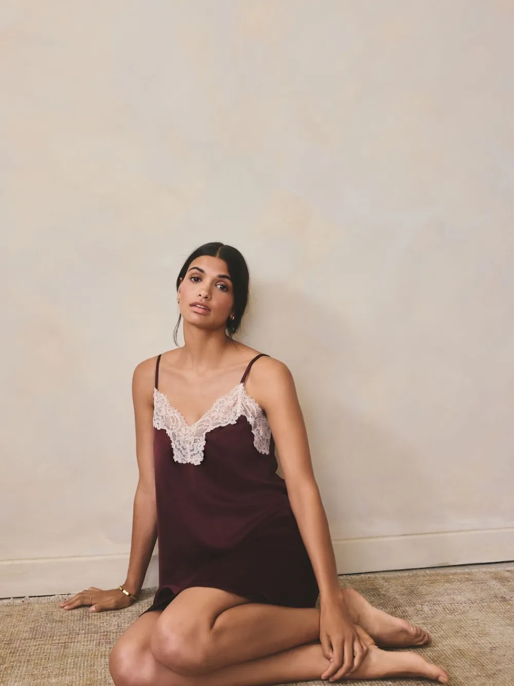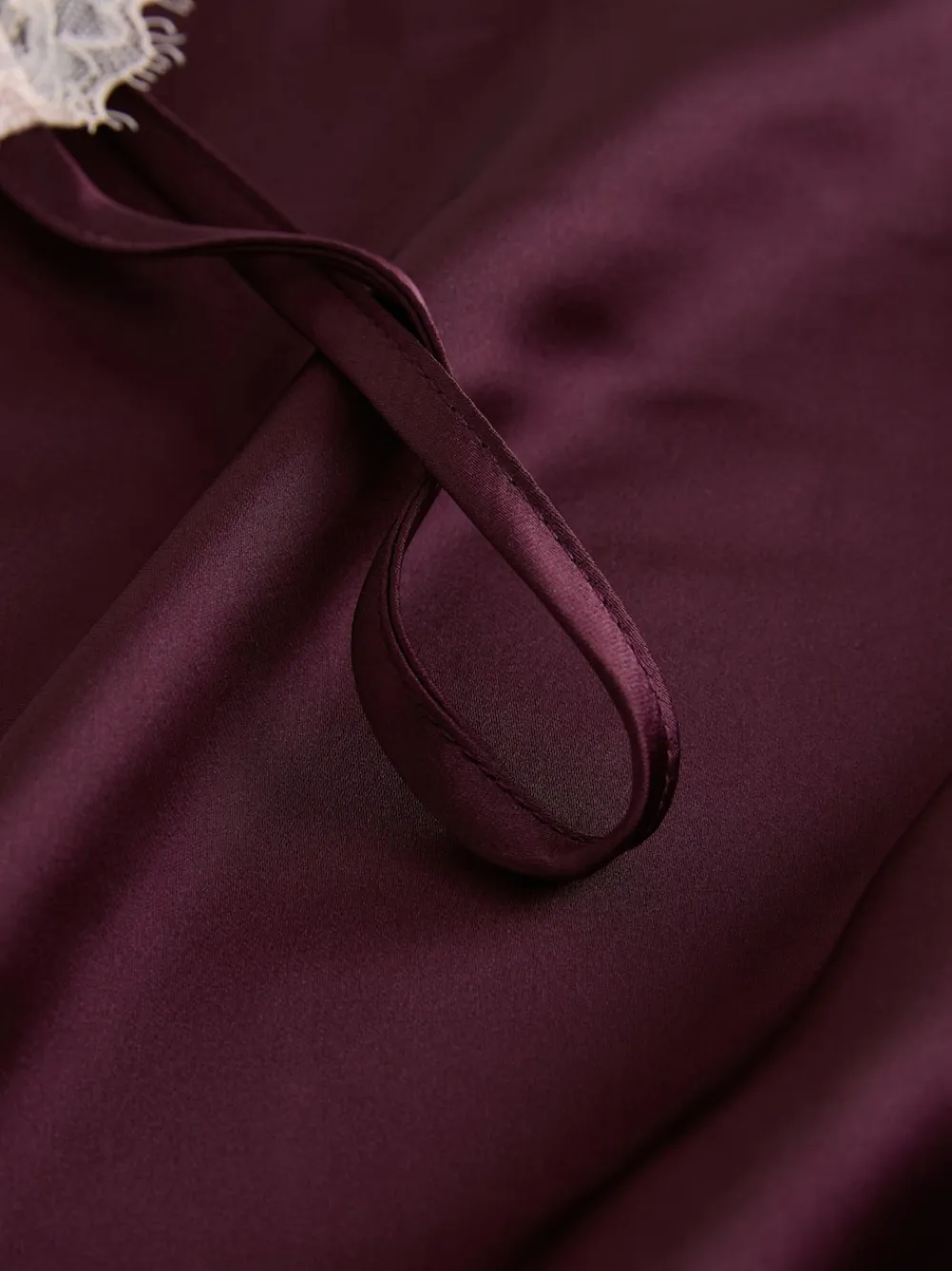 Embrace night-time elegance with this super comfy and lightweight slip dress in rich burgundy red. Featuring a flattering V-neckline adorned with contrasting lace detailing and delicate spaghetti straps. Pair it with the matching robe for a luxurious and sophisticated lounging ensemble. Slip dress Contrasting lace trim detailing Smooth satin fabrication Adjustable spaghetti straps Machine washable. 97% Recycled polyester, 3% Elastane. Items with the curve logo are available in sizes 18 and above., Warning: Keep away from fire and flames.