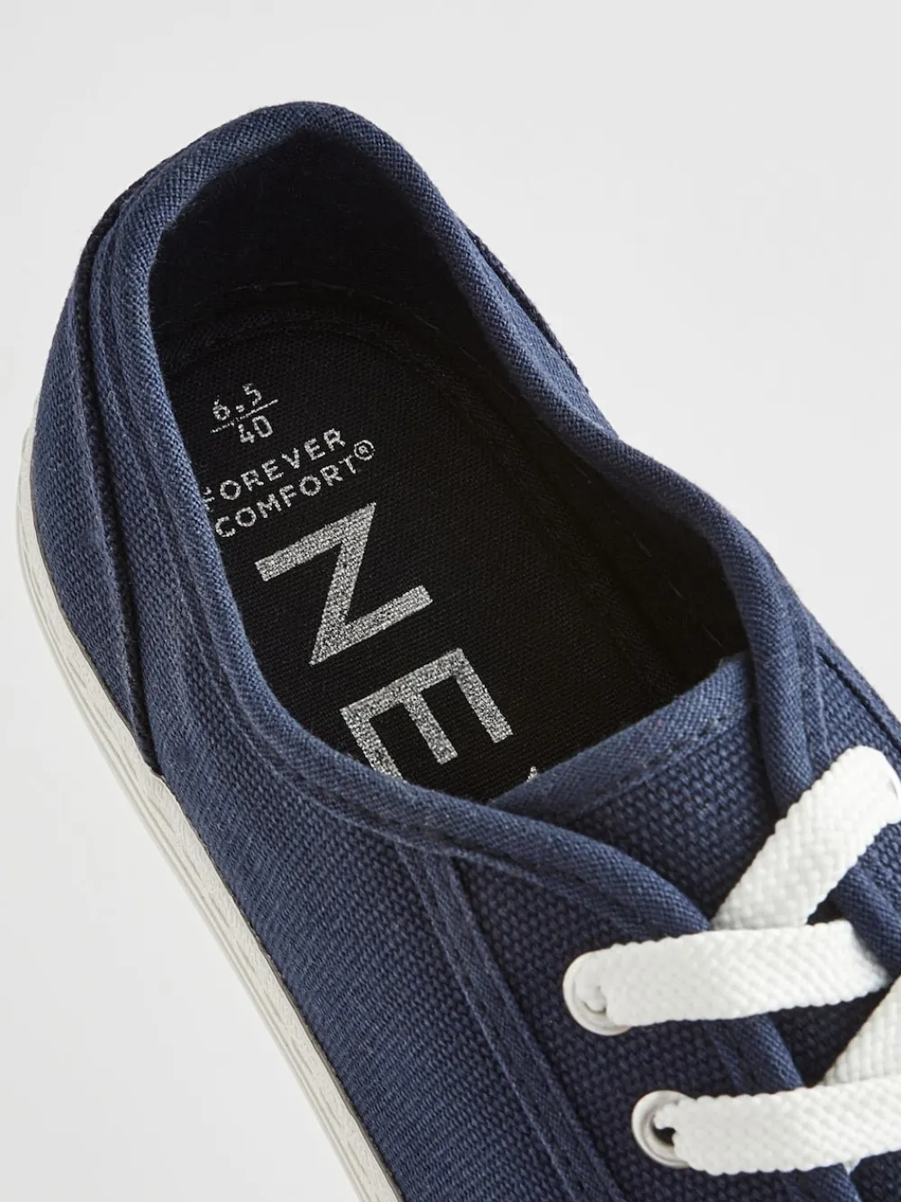 These versatile navy trainers have the timeless design of a retro pair of baseball shoes, featuring a round toe, a textile upper and a lace-up fastening finished with a Forever Comfort® cushioned footbed and a rubber outsole. Lace-up fastening Round toe Forever Comfort® footbed Rubber outsole Upper – Textile, Lining & Sock – Textile, Sole – Other Materials.