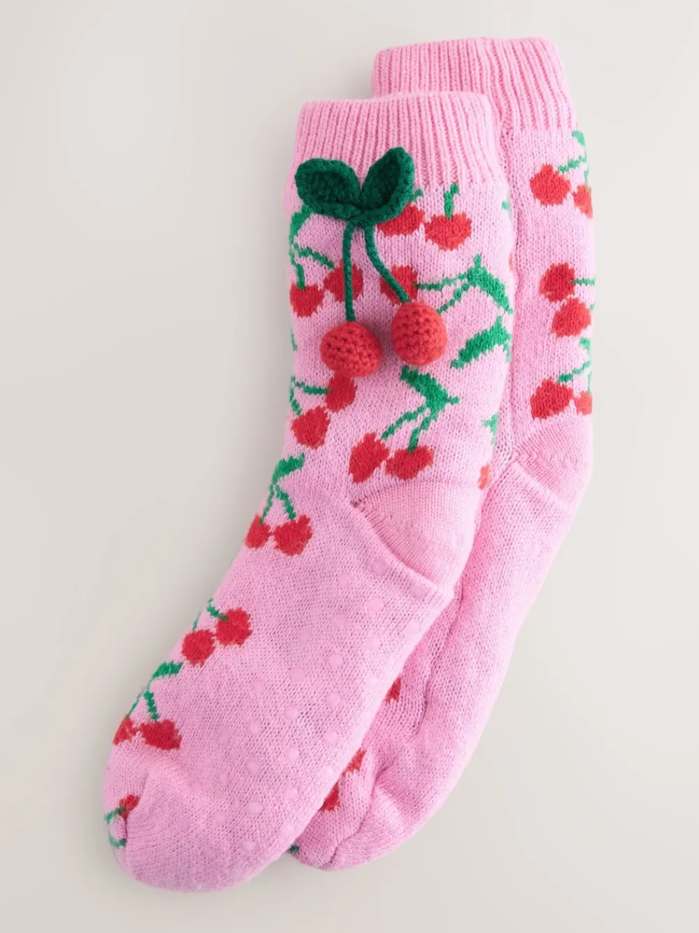 Next Chunky Slipper Socks 1 Pack Pink Cherries Clearance
