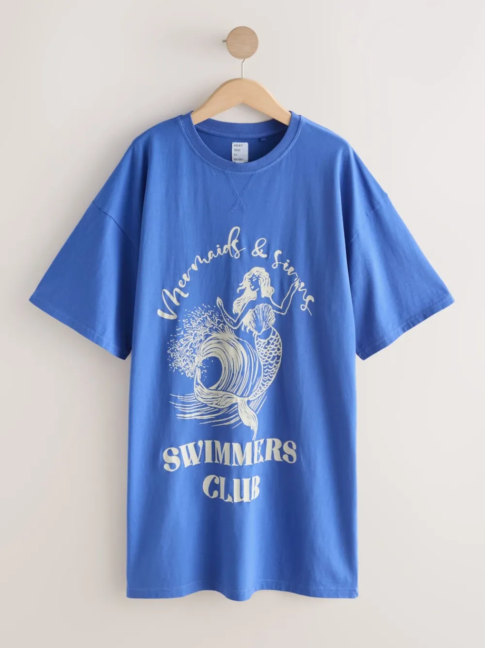 Dive into dreamy comfort with this vibrant cobalt blue nightie. Made from 100% cotton for a super soft feel, it features a playful graphic print perfect for relaxed bedtime wear. Ideal for staying cool and comfortable all night long. Nightie 100% cotton Short sleeve Graphic print Machine washable. 100% Cotton. Warning: Keep away from fire and flames.