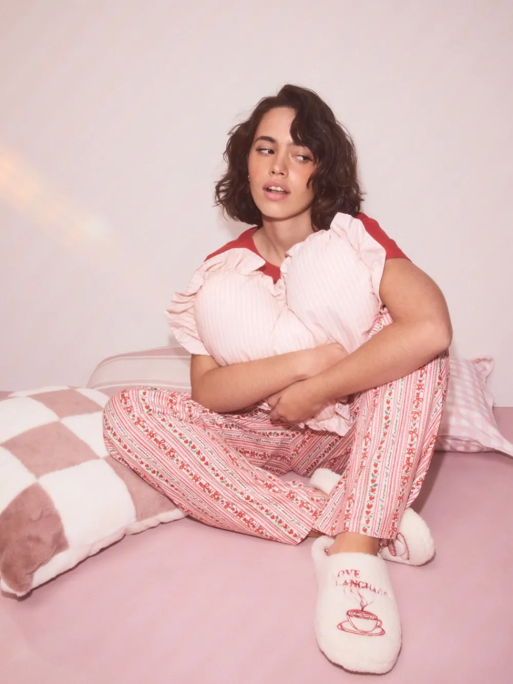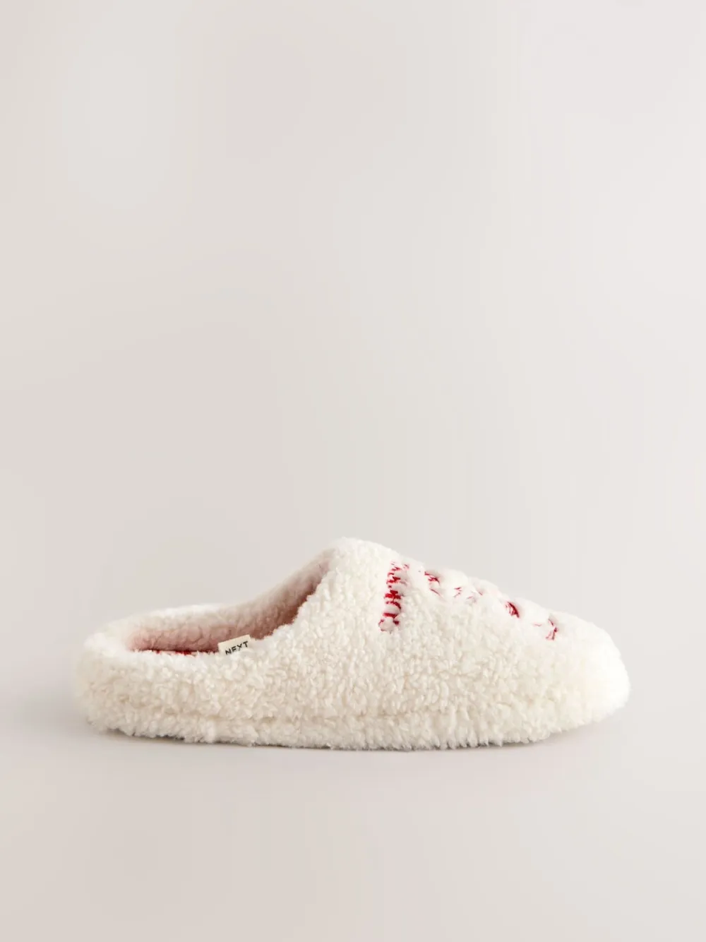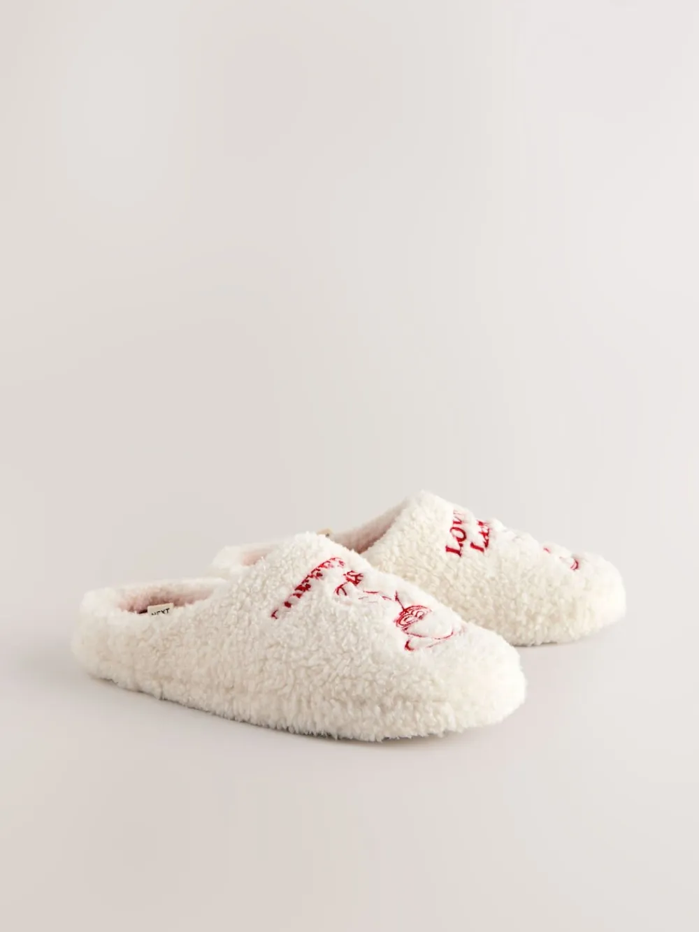 Treat your feet to instant warmth with these super soft and comfy borg mule slippers. The plush cream borg features adorable coffee cup embroidery and a charming message, while the inner lining boasts a red gingham print. Perfect for coffee lovers, simply slip these on for ultimate relaxation at home. Super soft and comfy borg fabric Mule slipper style Coffee cup embroidery Gingham print lining Upper – Textile, Lining & Sock – Textile, Sole – Textile, Other Materials.