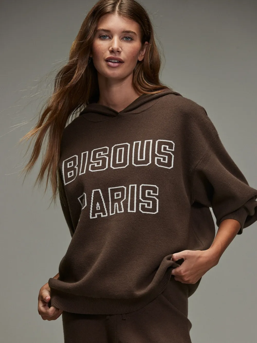 Step into autumn/winter with this chic and comfortable chocolate brown hoodie. Its cosy, relaxed fit and sporty look are elevated by a stylish jacquard graphic. The hood provides extra warmth, while the open hems and cuffs ensure a comforting fit. Pair with the matching drawstring wide-leg trousers for a complete co-ord. Hoodie Jacquard graphic Hooded Open hems and cuffs Machine washable. 50% Viscose, 28% Polyester, 22% Nylon.