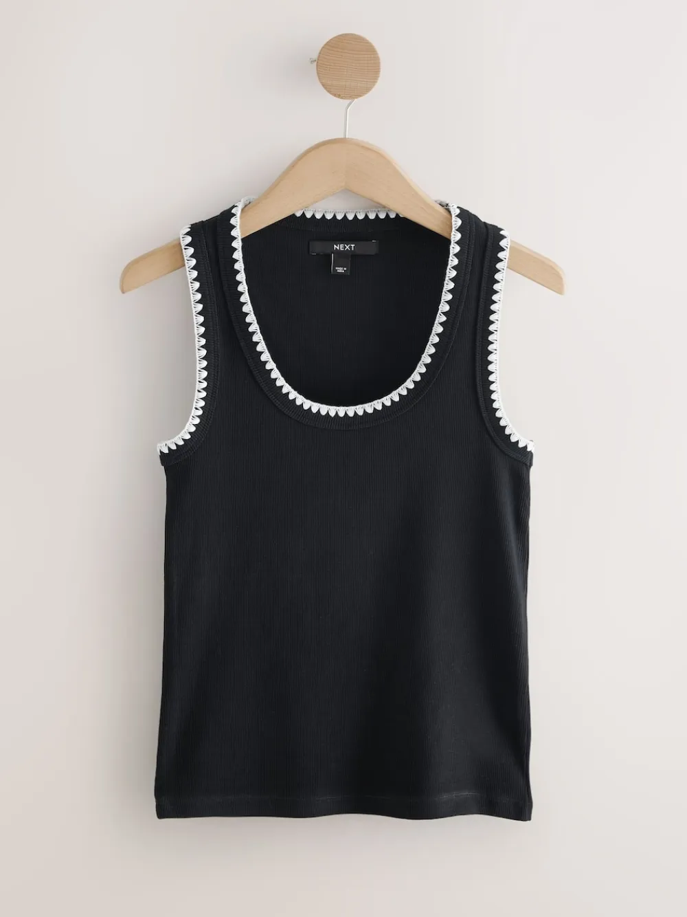 Next Contrast Knit Trim Scoop Neck Sleeveless Tank Vest Top Black/White Hot