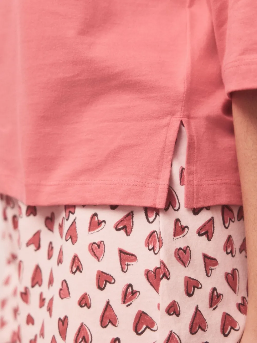 Ensure a cosy night’s sleep with this soft and breathable short pyjamas set. Featuring a plain pink tee and comfortable shorts with a playful heart print, this set is available in multiple designs. Perfect for comfortable bedtime styling. Short sleeve top Heart print shorts Available in maternity style Machine washable. Pyjama Top and Pyjama Bottom 100% Cotton. Warning: Keep away from fire and flames.