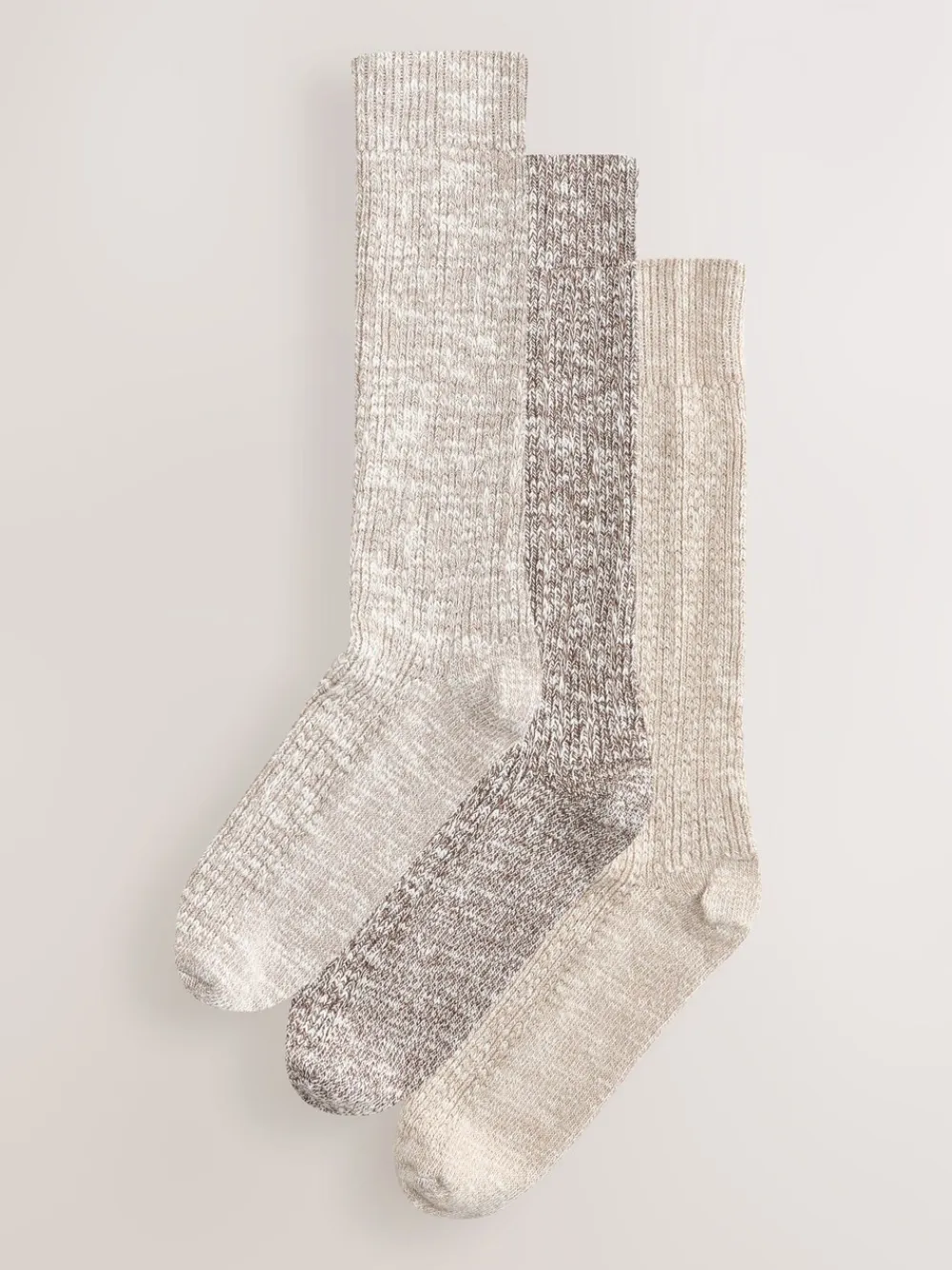 Next Cotton Slub Slouchy Ankle Socks 3 Pack Neutral Hot