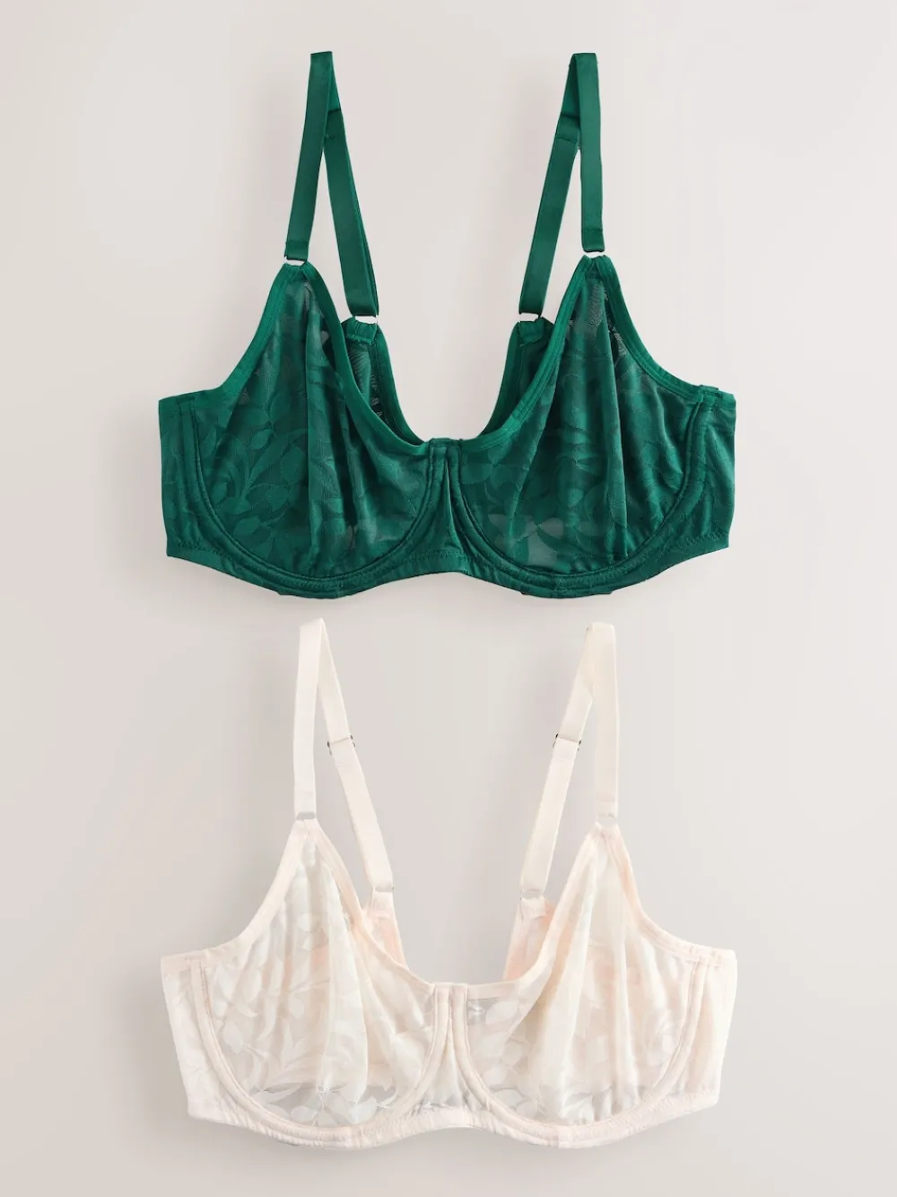 Next DD-G Lace Non Pad Full Cup Bras 2 Pack Green/Ecru