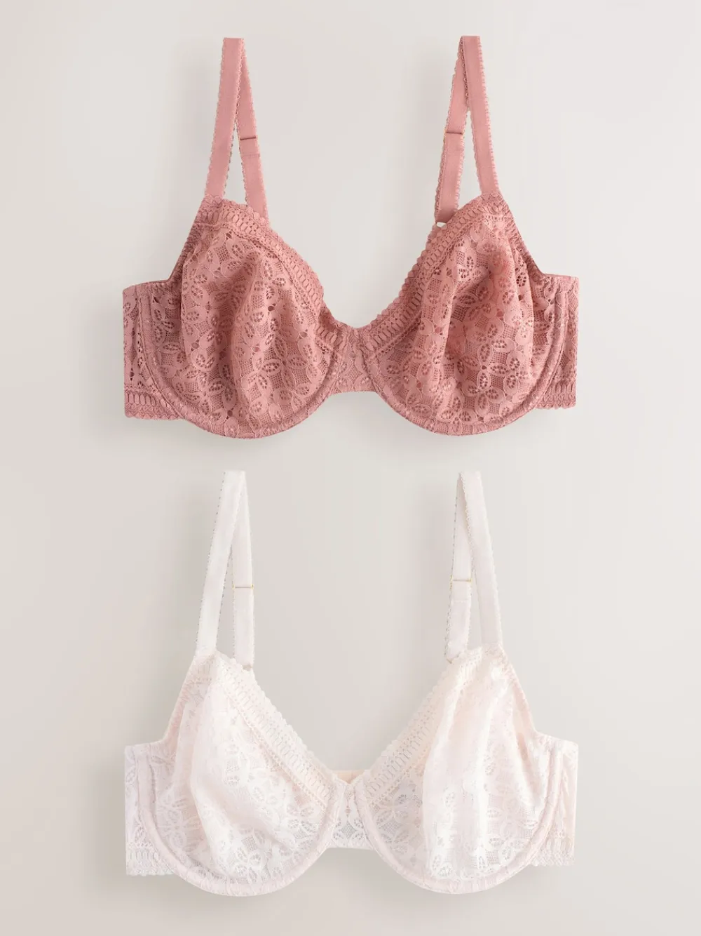 Next DD+ Lace Non Pad Full Cup Minimiser Bras 2 Pack Rose/White Outlet