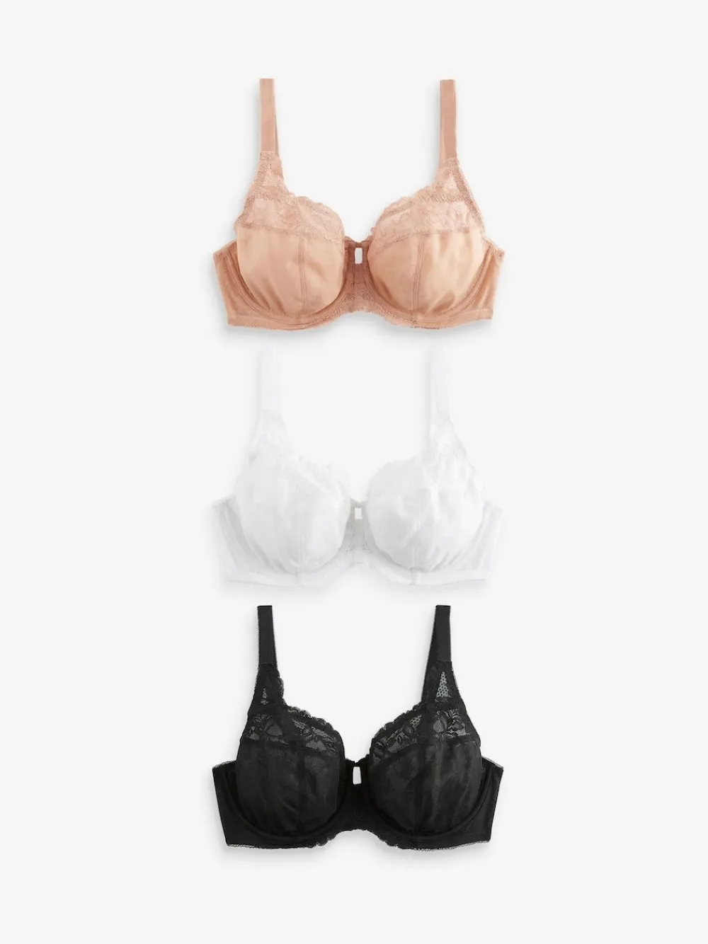 Next DD+ Lace Trim Non Pad Full Cup Underwired Bras 3 Pack Black/White/Praline Nude Sale