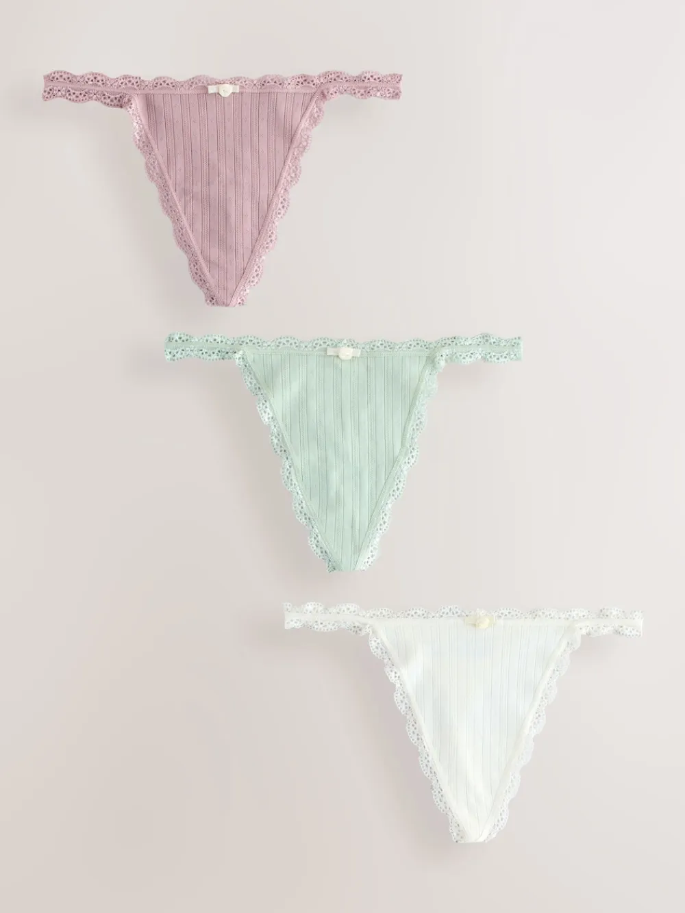 Next Ecru/Pink Thong Seamfree Pointelle Knickers 3 Pack Hot