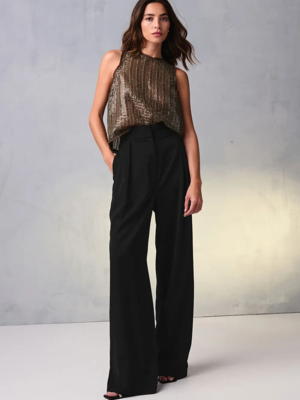 These stylish black trousers can be worn to elevate a casual outfit or as workwear for the office, featuring a wide leg, elasticated waist detailing, front pleats and side pockets. The waistband features belt loops with a button and zip fly fastening. Regular fit Wide leg Elasticated waistband Belt loops Side pockets Zip fly and button fastening Front pleats Short to fit inside leg 27″ / 69cm. Regular to fit inside leg 29″ / 74cm. Long to fit inside leg 31″ / 79cm. XL Tall to fit inside leg 33″ / 84cm. Machine washable. 100% Recycled polyester. Items with the curve logo are available in sizes 18 and above., Our tall collection is designed to fit women 5’10” and above. This has been proportionally increased through the body, leg and sleeve to achieve the perfect fit. Available in sizes 8-20.