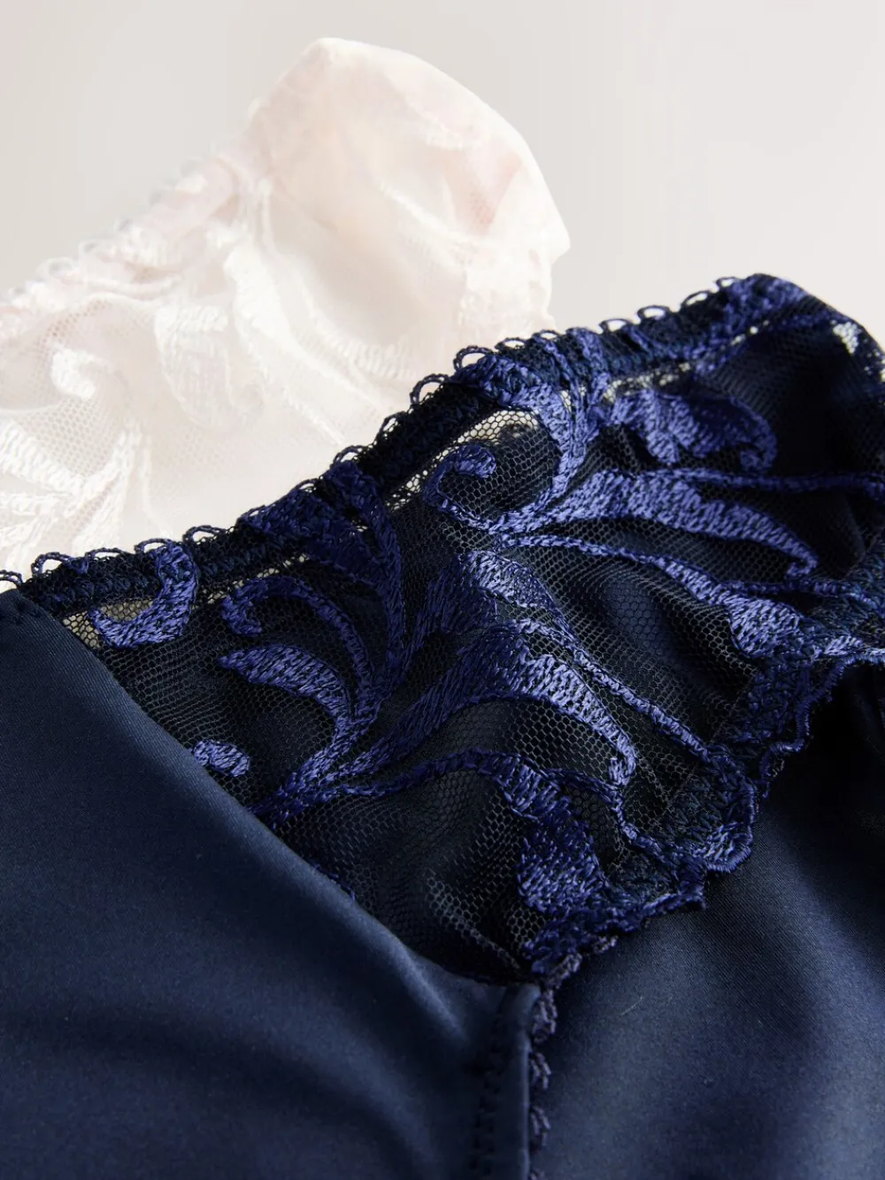 This two-pack of knickers is a perfect foundation for any outfit, offering a blend of comfort and elegance. Featuring intricate embroidery, the classic navy and cream designs ensure a delicate and comfortable feel for every day. Pack of two Embroidered detail Classic brief shape Machine washable. 2 x Knickers Main 82% Nylon, 15% Elastane, 3% Polyester. Gusset 100% Cotton. Items with the curve logo are available in sizes 18 and above.