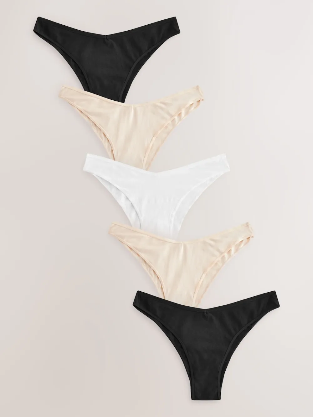 Next Extra High Leg Cotton Rich Knickers 5 Pack Black/Pastel Rose Nude/White Sale