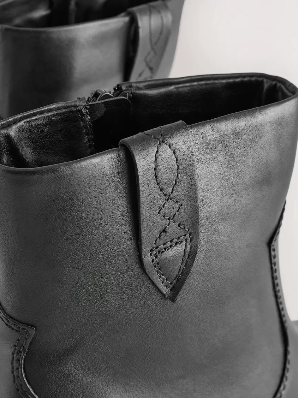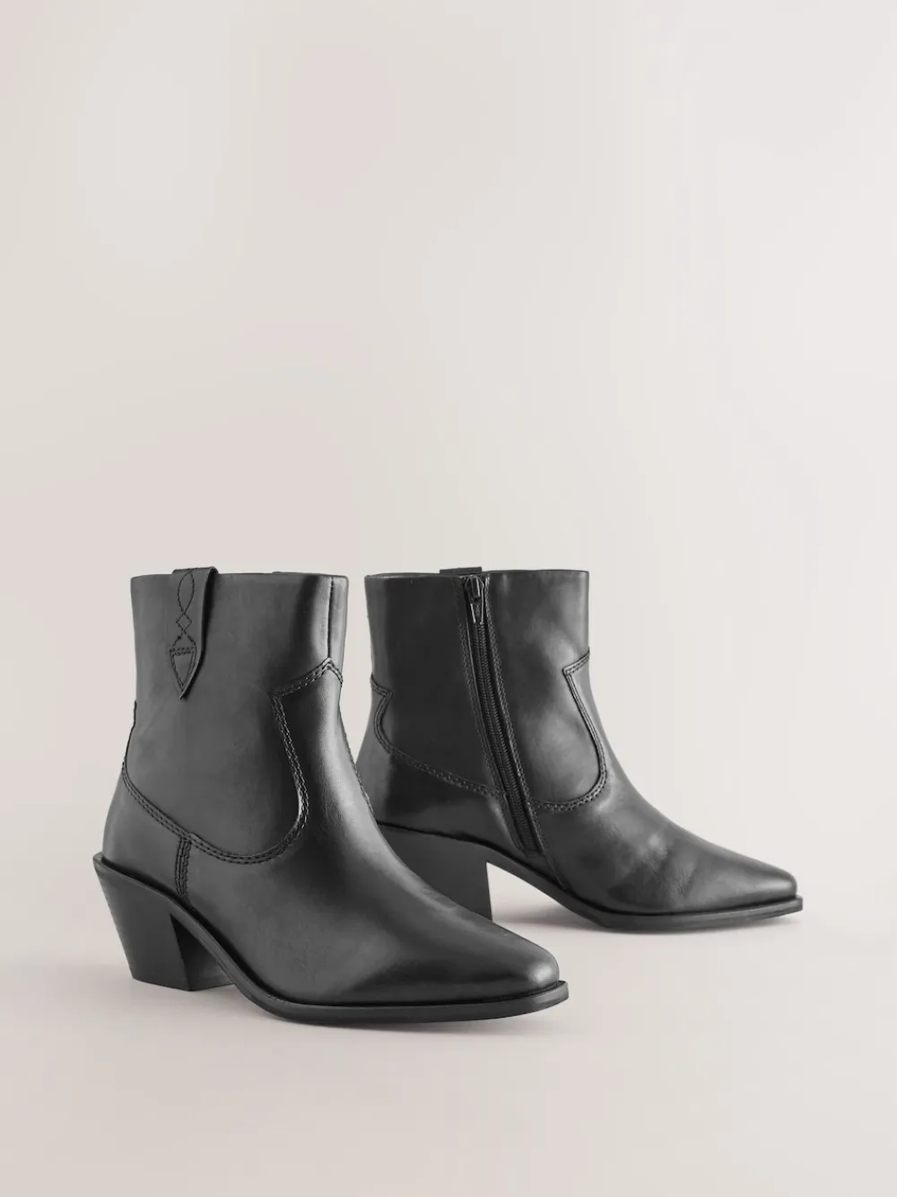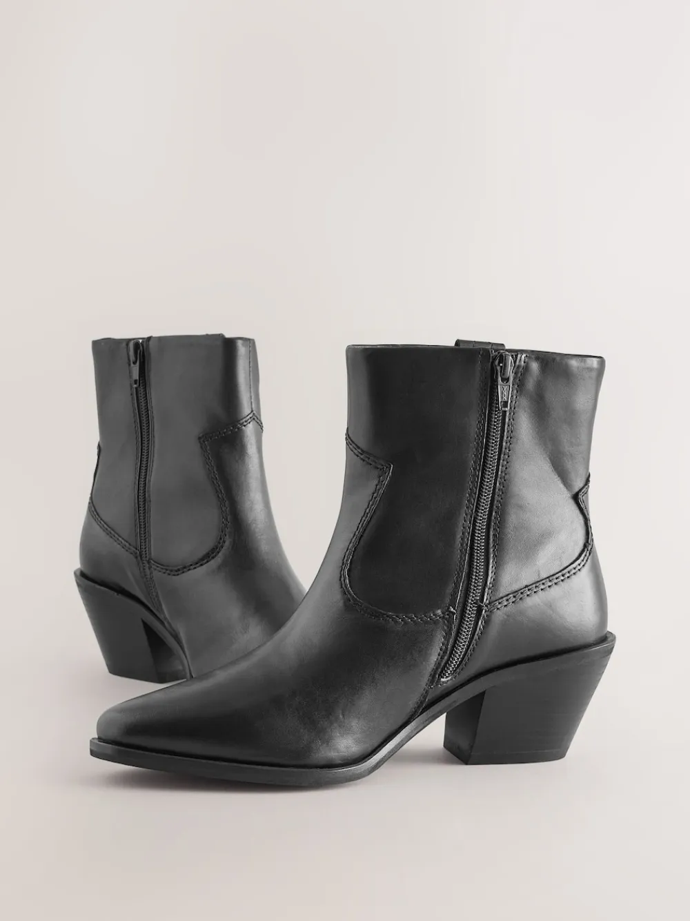 Next Extra Wide Fit Cowboy Block Heel Ankle Boots Black Leather