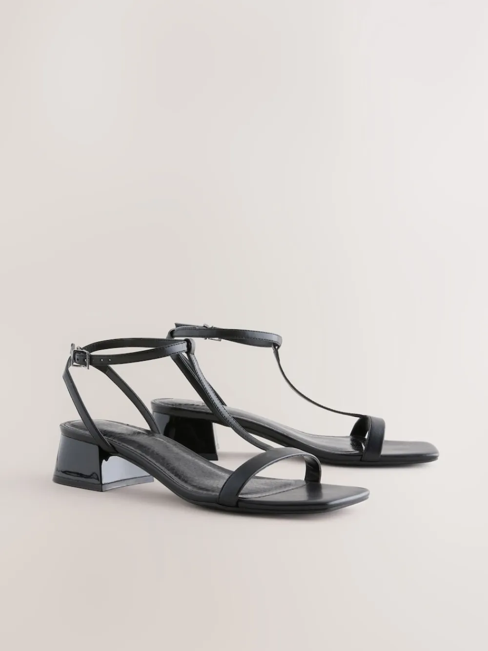 These stunning shoes have a T-bar strappy upper with an open square toe, an adjustable heel fastening and a Forever Comfort® cushioned footbed, finished with a low block heel. Strappy upper T-bar Open square toe Forever Comfort® footbed Low block heel Heel height 4.5cm. Upper – Other Materials, Lining & Sock – Other Materials, Sole – Other Materials.