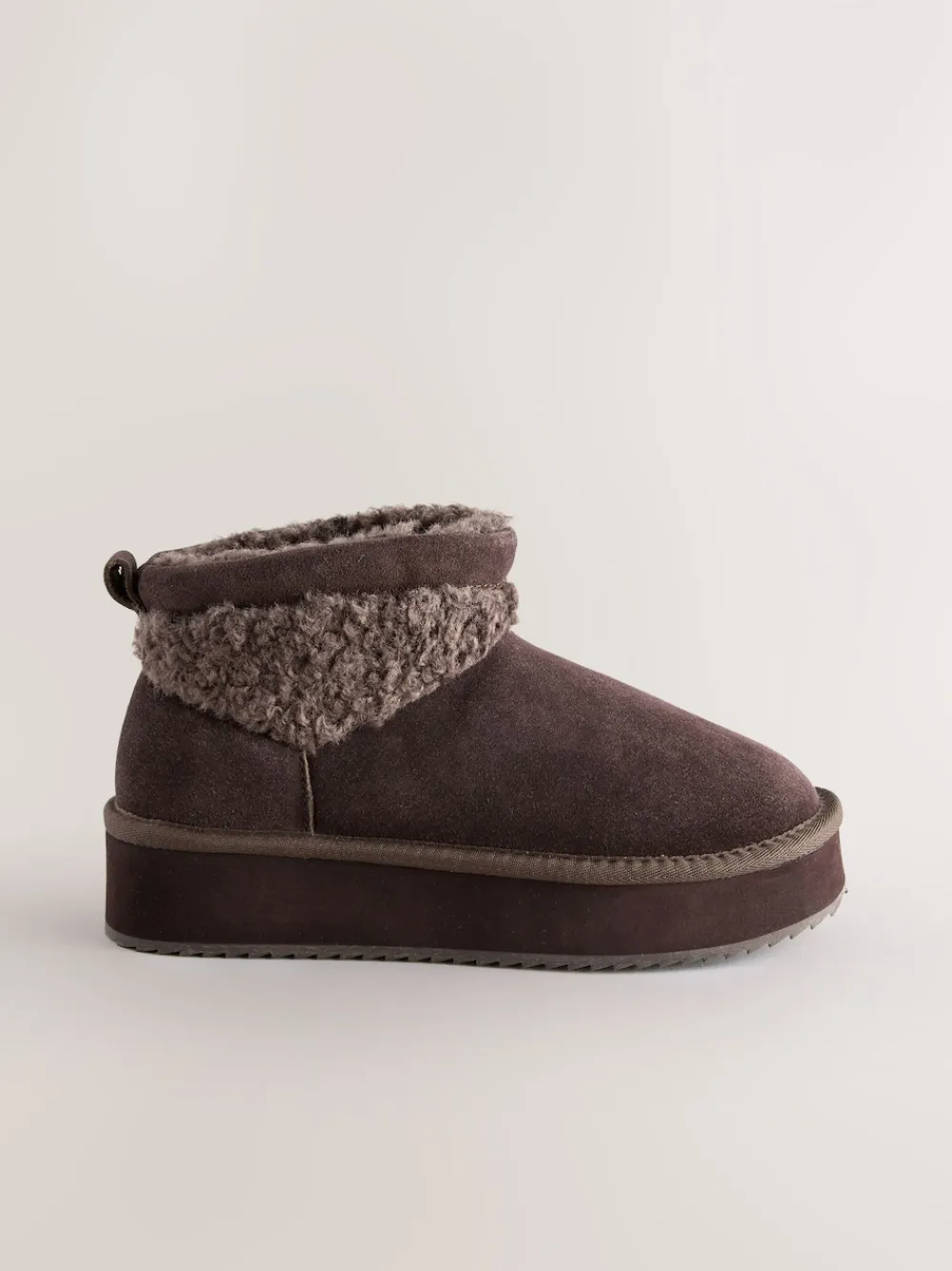 Next Faux Fur Borg Platform Boots Chocolate Brown Suede Online