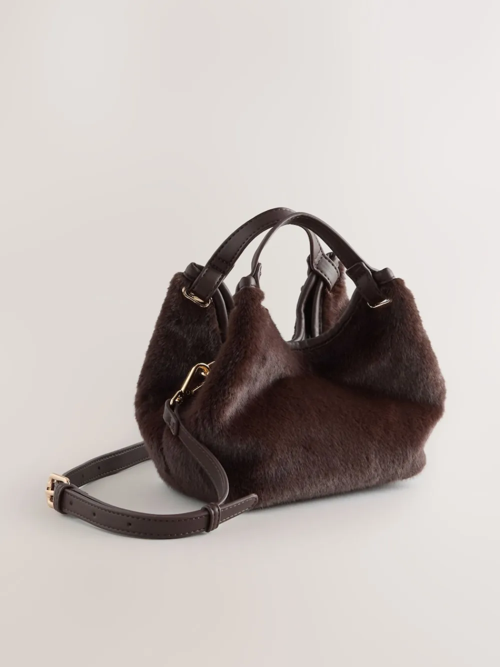 Next Faux Fur Cross-Body Bag Chocolate Brown Best