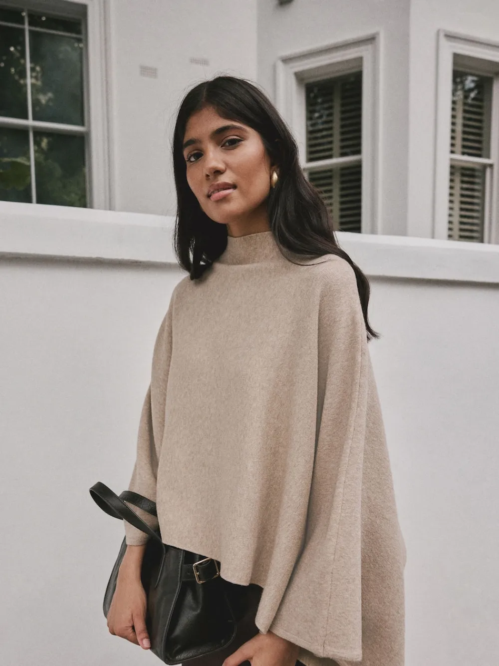 Next Fine Knit Cape Poncho Oatmeal New