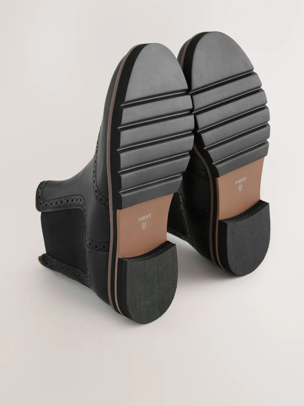 Next Forever Comfort® Brogue Detail Chelsea Boots Black Leather New