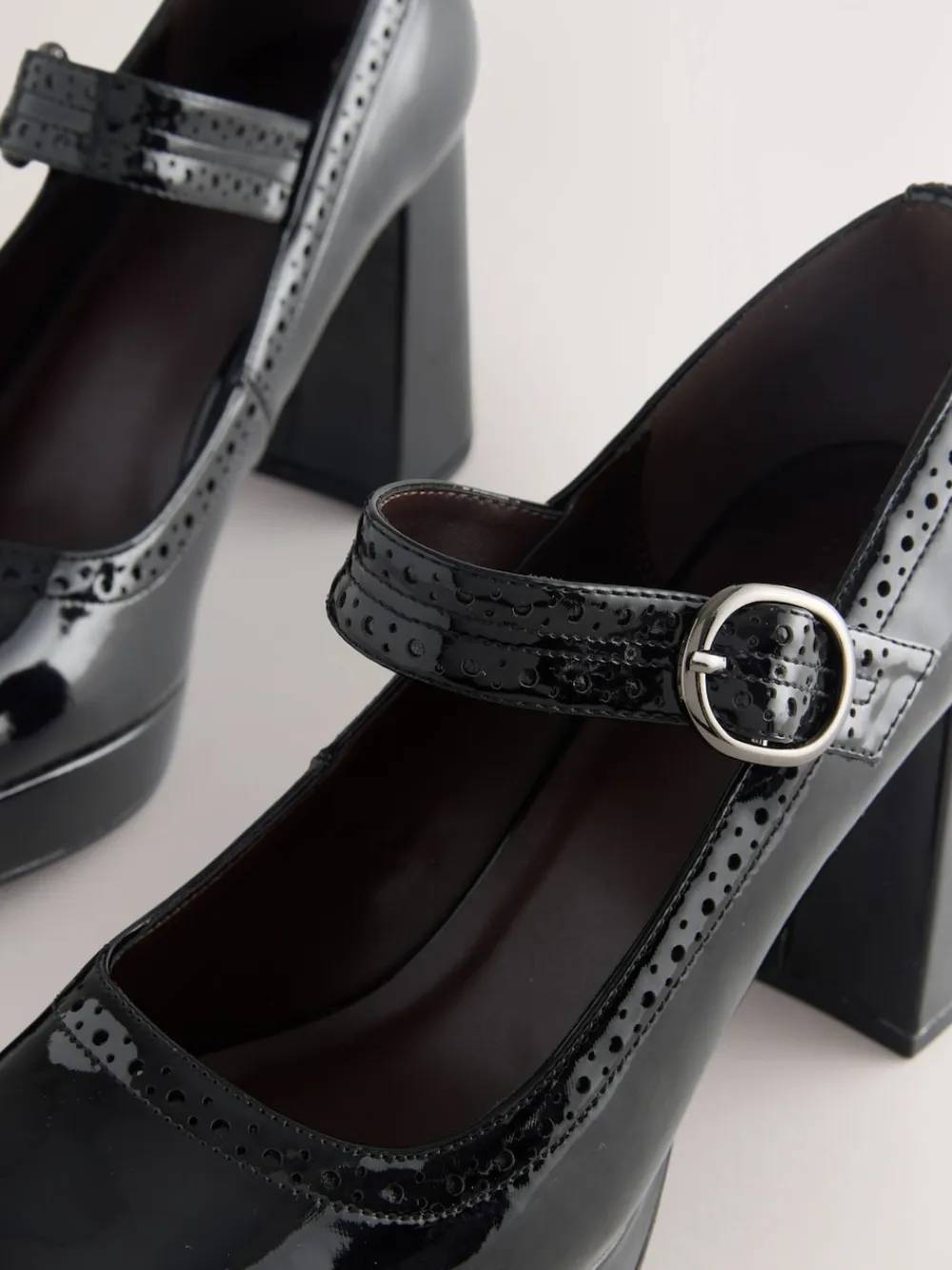 Be the first to review “Next Forever Comfort® Brogue Mary Jane Platform Block Heels Black Patent Best” Cancel reply
