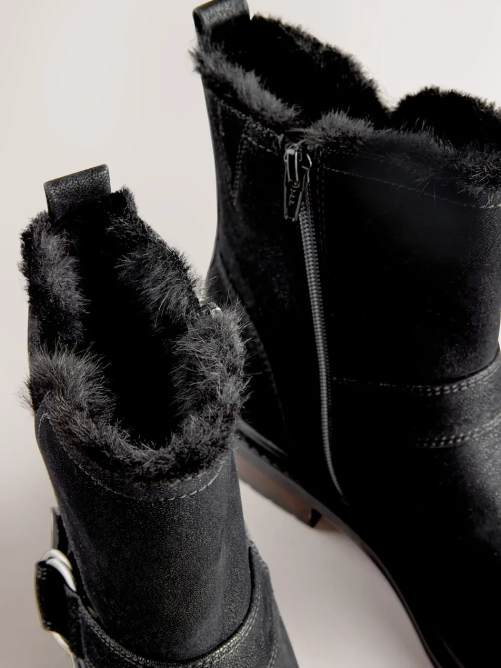 Next Forever Comfort® Faux Fur Hardware Ankle Boots Black Clearance