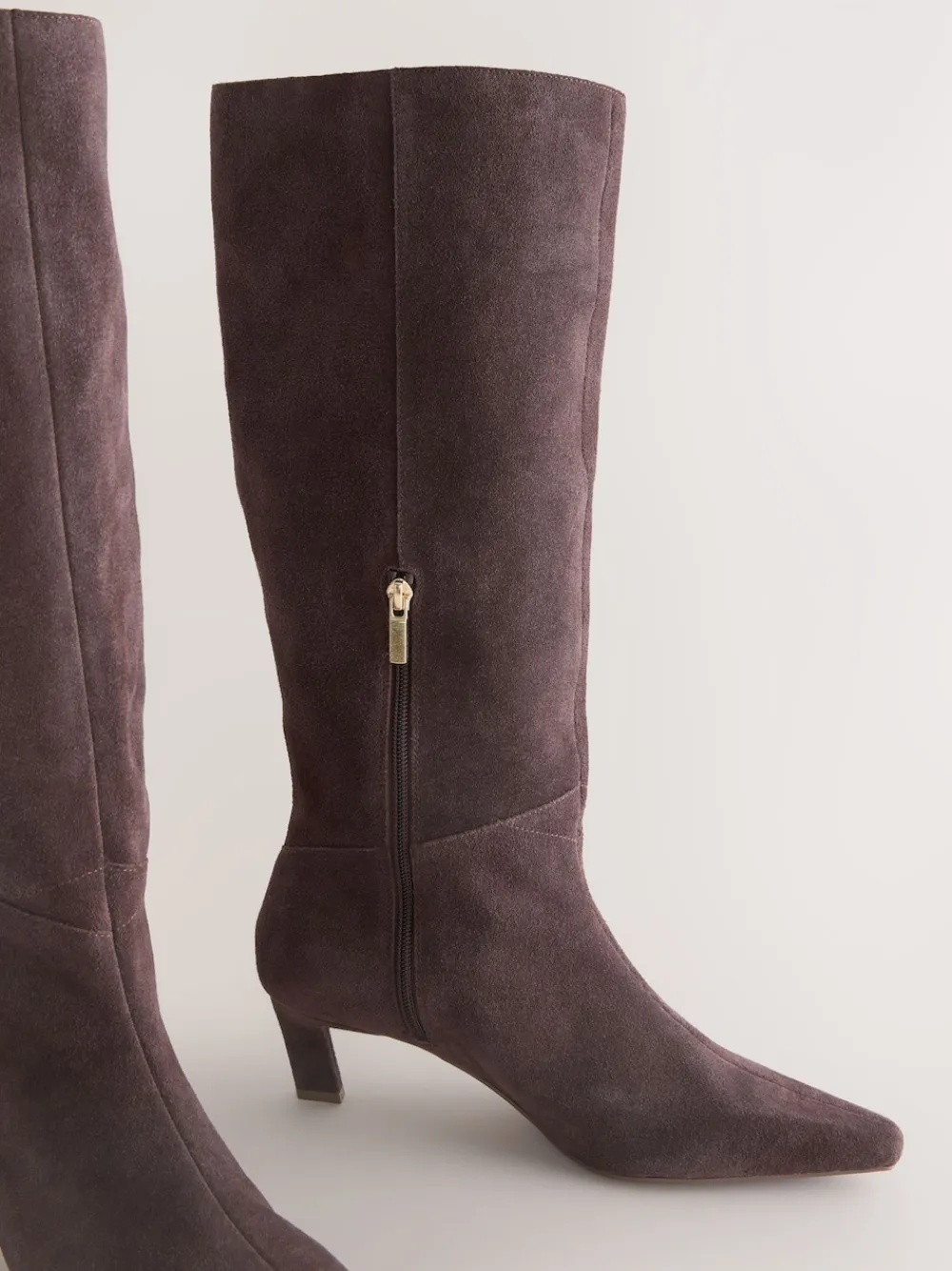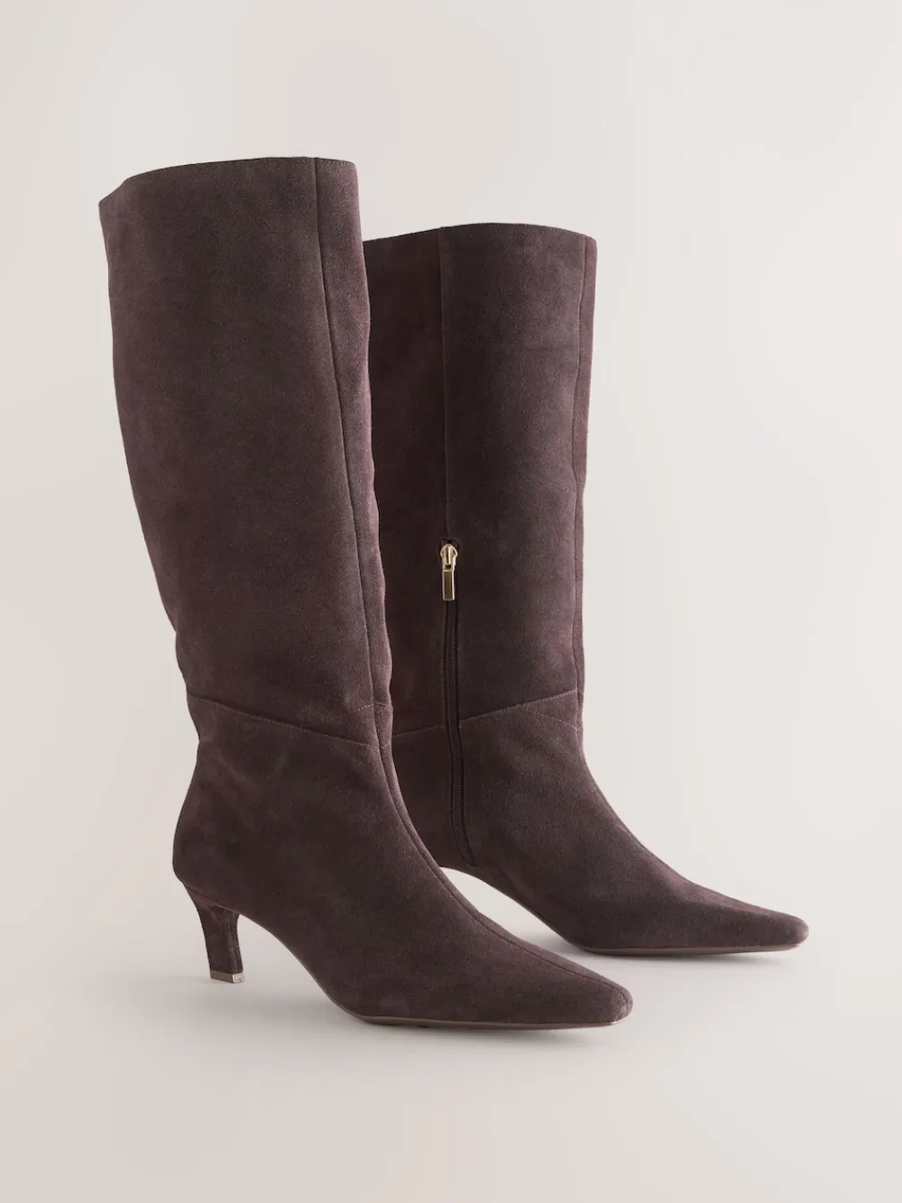 Next Forever Comfort® Knee High Chisel Toe Heeled Boots Chocolate Brown Suede New