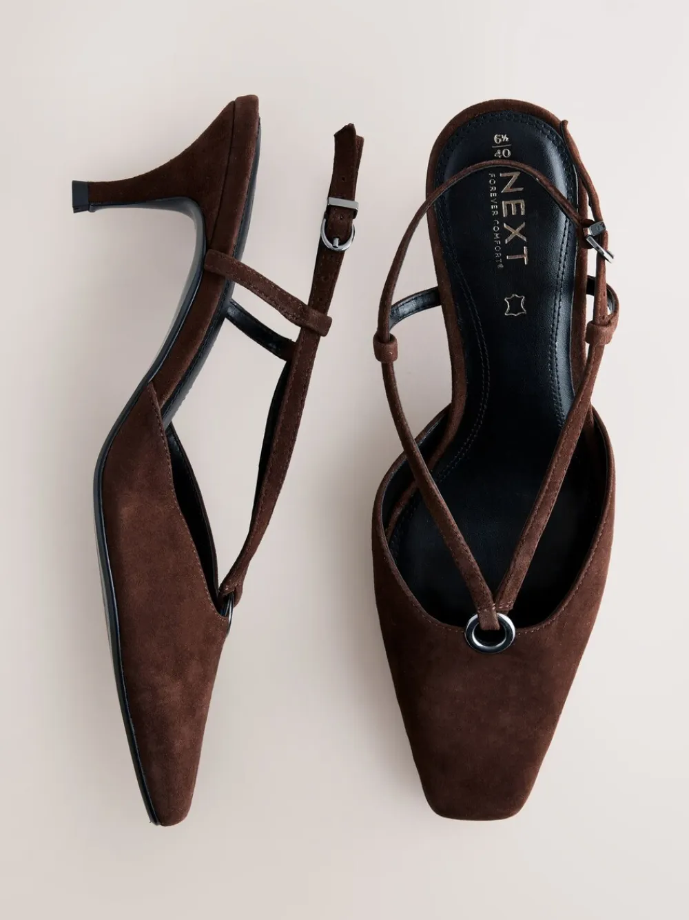 Define your look with these chic slingback heels. The rich leather is styled with a contemporary chisel toe and sophisticated silver hardware ring detail, while Forever Comfort® padding ensures all-day, elevated wearability. Forever Comfort® padding Leather upper Chisel toe Heel height 7cm. Upper – Leather, Lining & Sock – Other Materials, Sole – Other Materials.