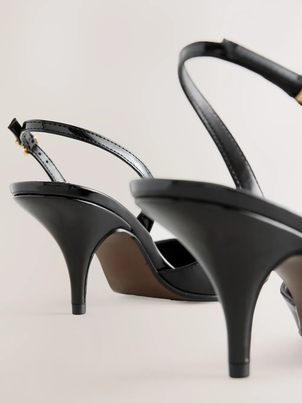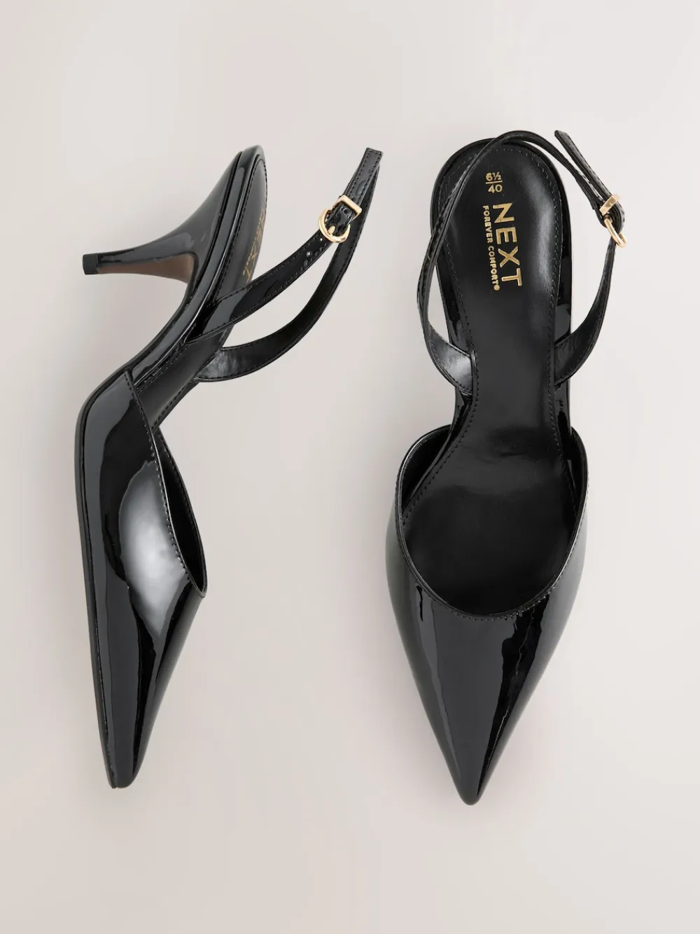 Exude sophistication with these sharp pointed toe slingback heels. Crafted with a sleek black patent upper, the elegant curvy design and slender kitten heel offer timeless glamour. Featuring Forever Comfort® padding and an adjustable strap, these are your essential desk-to-dinner shoes for chic confidence. Glossy patent upper Elegant pointed toe Secure adjustable slingback Forever Comfort® cushioning Curvy heel design Heel height 8cm. Upper – Other Materials, Lining & Sock – Other Materials, Sole – Other Materials.