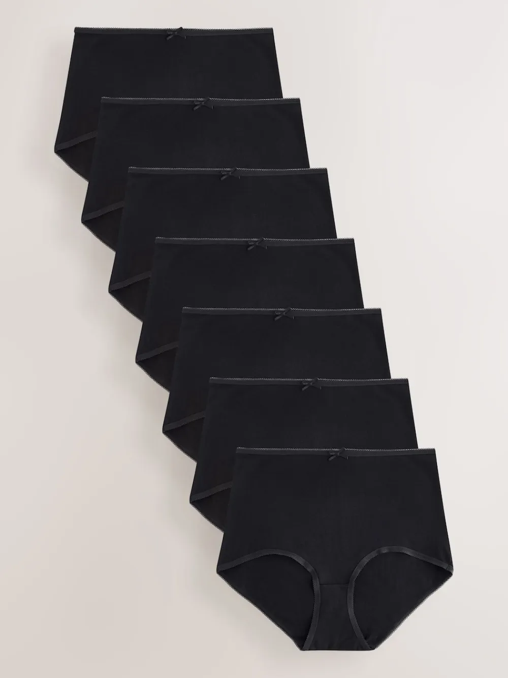 Next Full Brief Cotton Rich Knickers 7 Pack Black Clearance