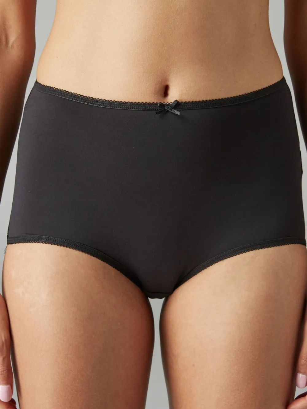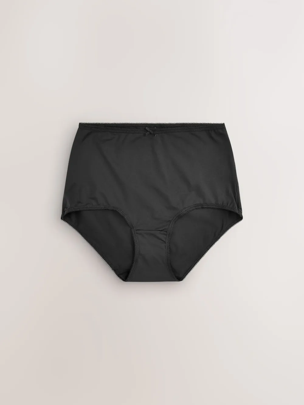 Meet your new everyday underwear with our seven-pack of microfibre knickers in black. Designed to provide that extreme comfort feeling, they’re crafted with an ultra-soft touch and sit comfortably on your hips for a flattering silhouette. The seamless construction makes them an ideal choice under fitted clothing. With seven pairs, you’ll have a fresh set for each day of the week. Pack of seven Microfibre stretch fabric Seamless construction Elasticated waistband Bow detail at the front Cotton gusset Machine washable. 7 x Briefs Main 86% Polyester, 14% Elastane. Gusset 100% Cotton. Items with the curve logo are available in sizes 18 and above.
