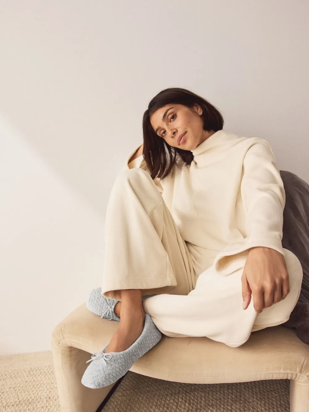 Enjoy effortless comfort at home with these super comfy grey ballet slippers. The soft, lightweight fabric features a subtle textured knit, complete with a feminine bow detail, making these slip-ons perfect for cosy relaxation. Slip-in ballet style Super comfy and lightweight Bow detail Upper – Textile, Lining & Sock – Textile, Sole – Textile, Other Materials.