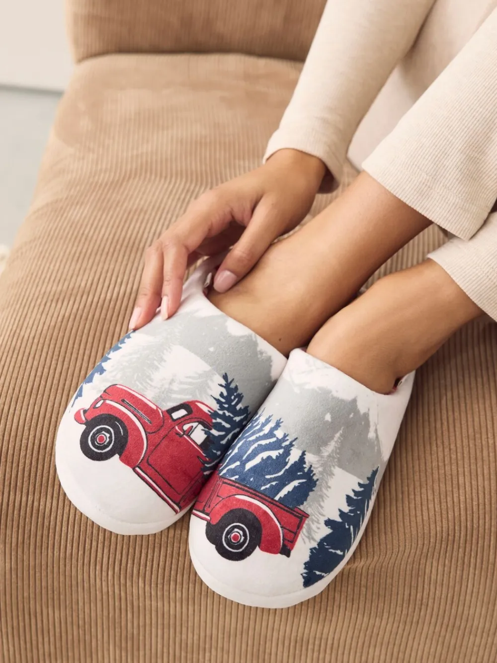Slide into festive comfort with these plush Christmas truck mule slippers, perfect for relaxing at home during the Christmas season. Featuring a fun red truck print and an easy slip in design, these plush mules deliver instant warmth and style. Pair it up with the matching family pyjama set this holiday! Plush mule slippers Christmas style print Easy slip in design Matching Family set Upper – Textile, Lining & Sock – Textile, Sole – Textile, Other Materials.