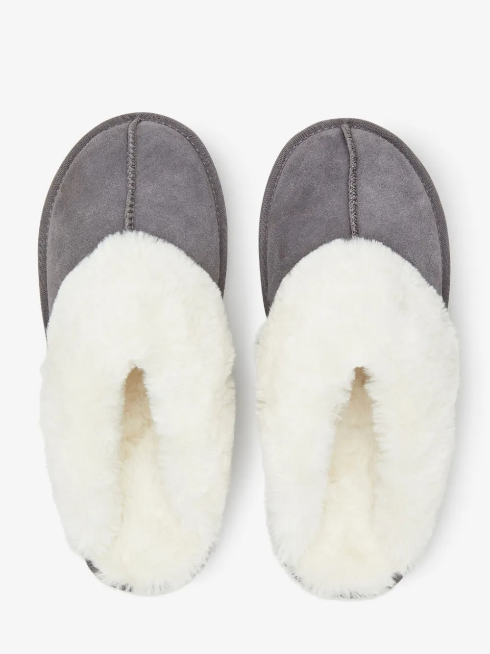 Next Grey Faux Fur Lined Suede Mule Slippers New