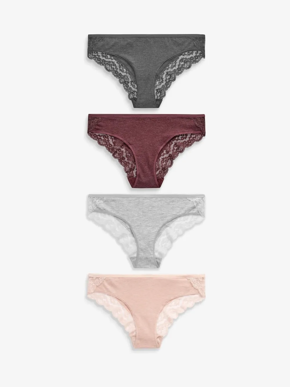 Next Grey Marl/Pink/Plum Bikini Cotton Lace Knickers 4 Pack New