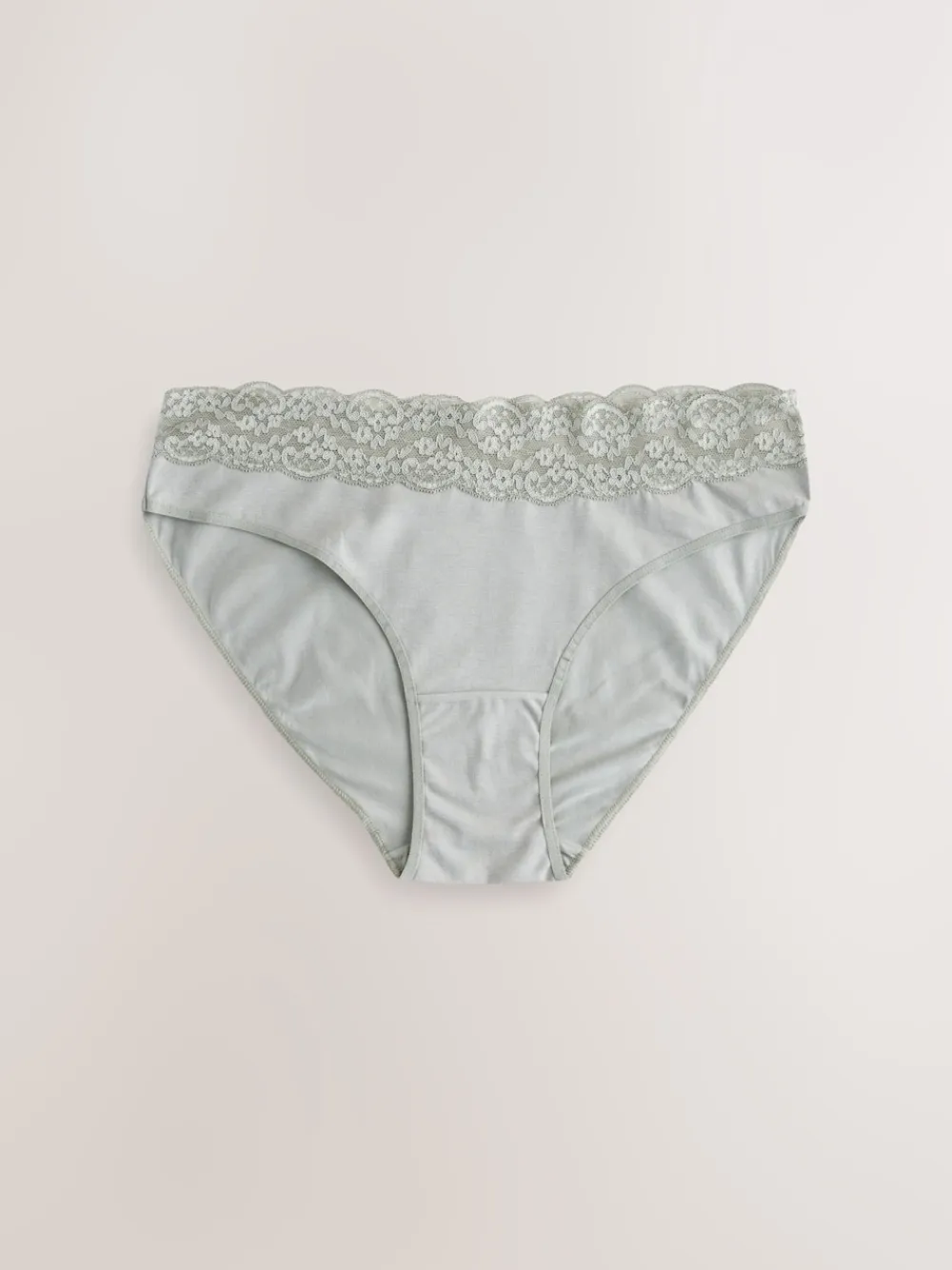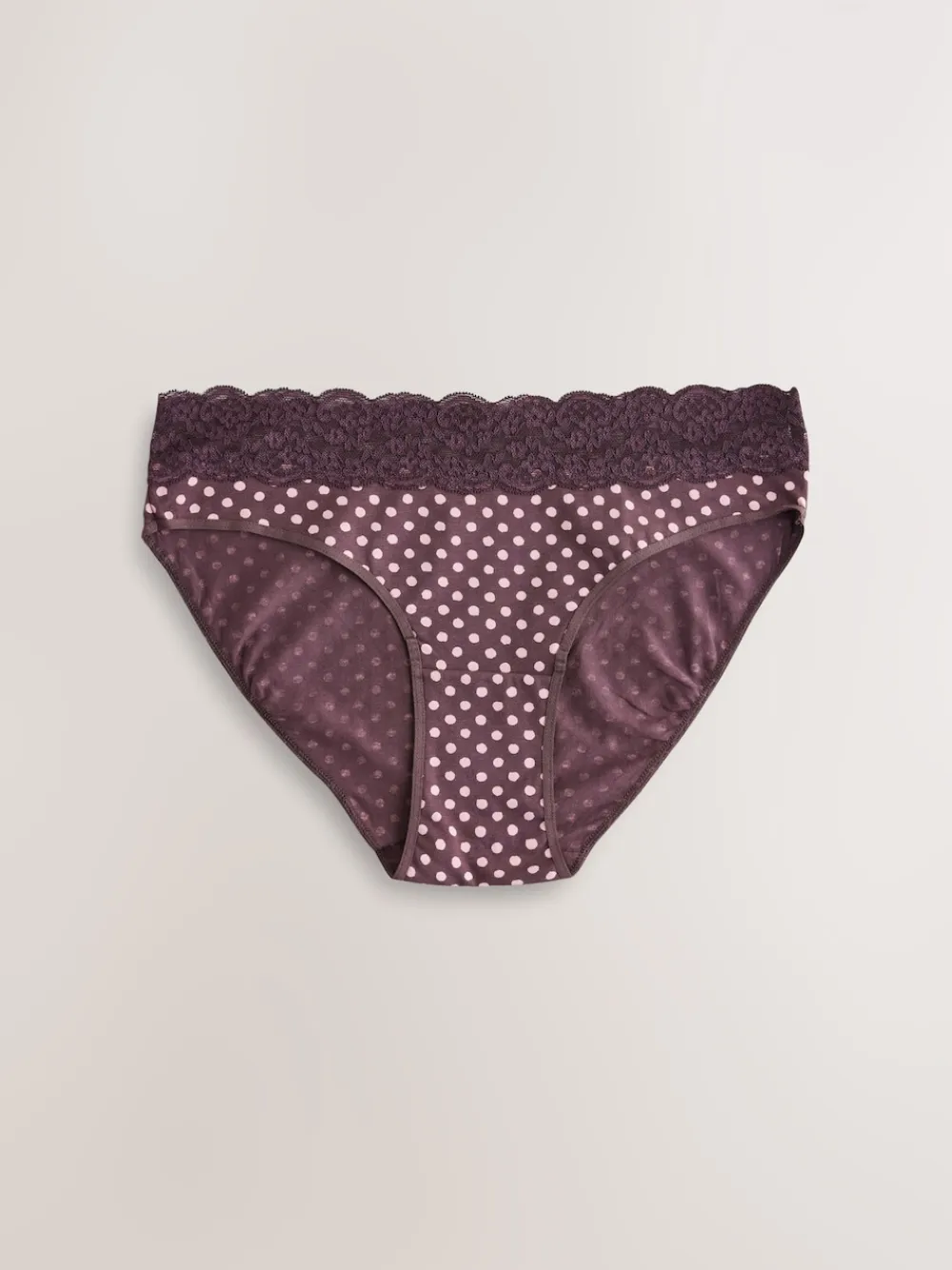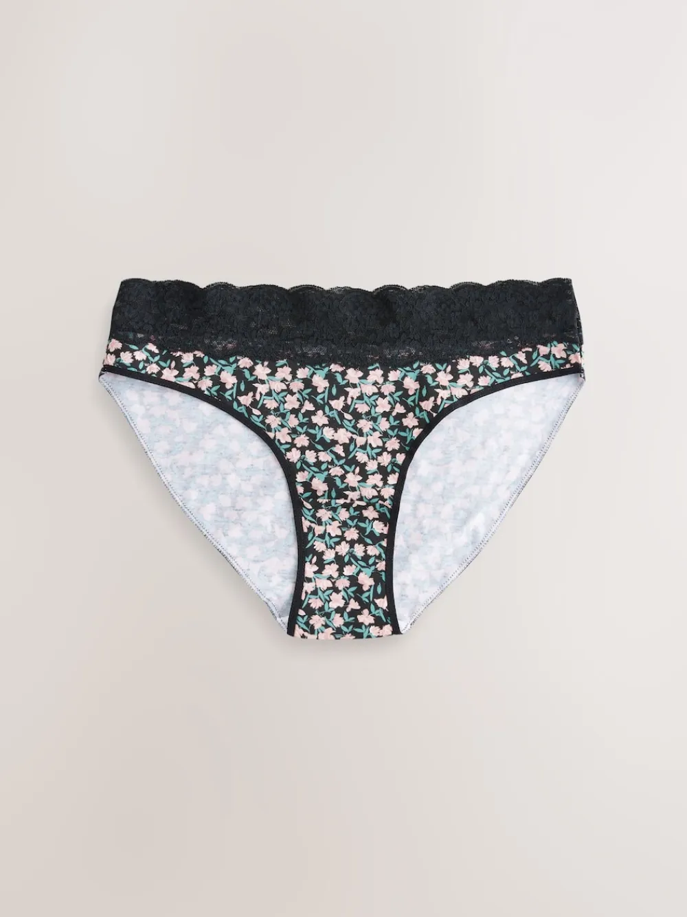 Next High Leg Cotton and Lace Knickers 7 Pack Printed Spot Sale