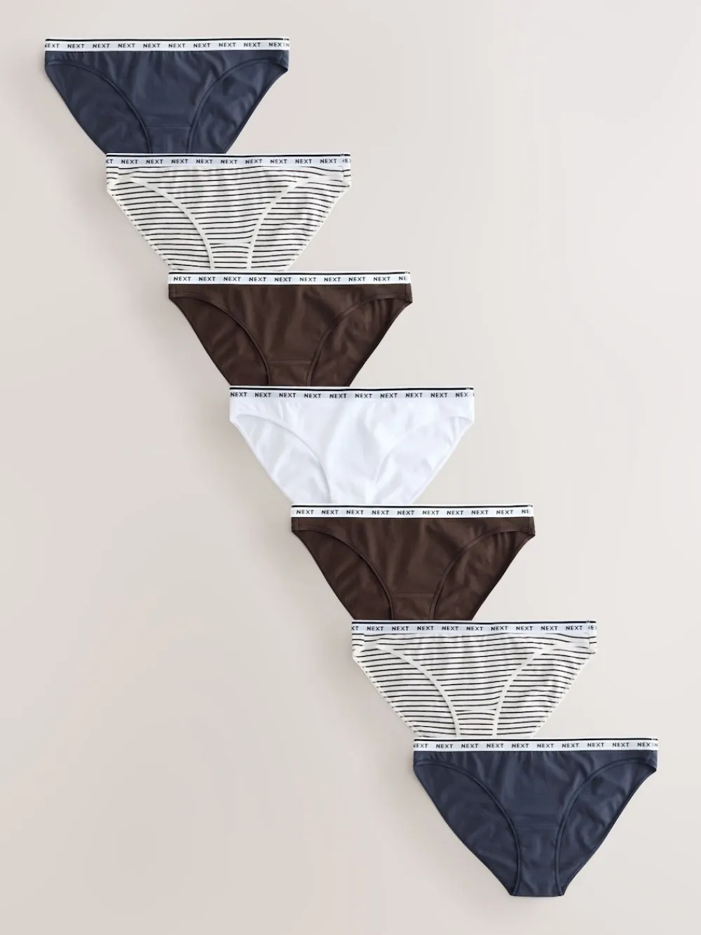 Next High Leg Cotton Logo Knickers 7 Pack Navy/Chocolate Stripe Online