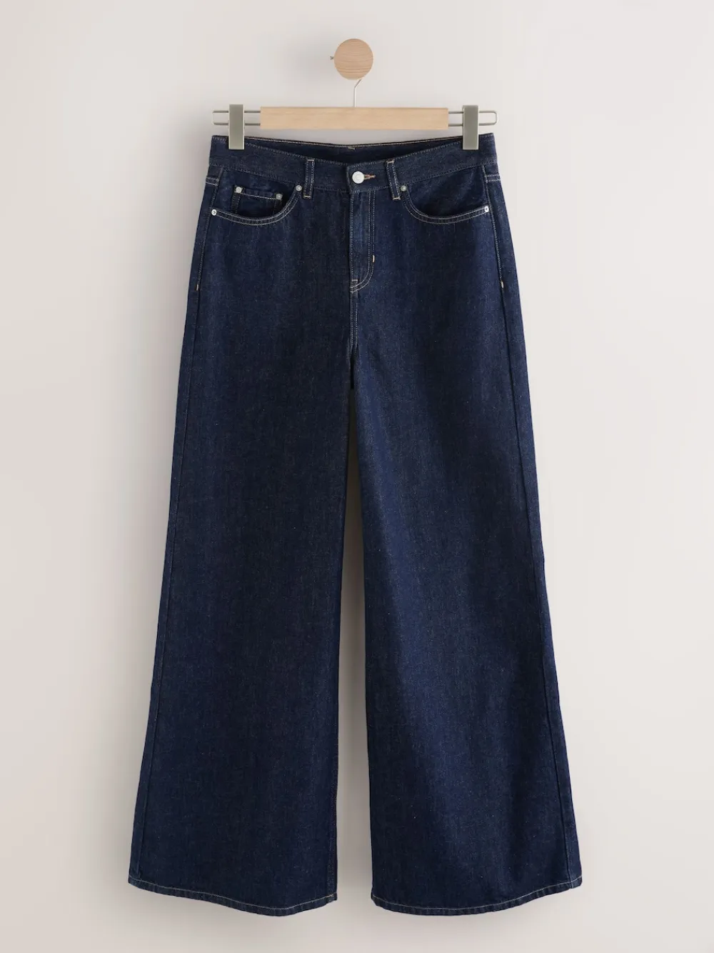 Next High Rise Palazzo Wide Leg Jeans Rinse Blue Hot