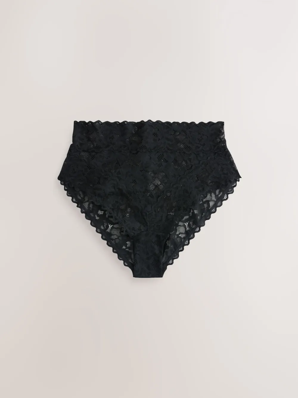 Next High Waist High Leg All Over Lace Knickers 3 Pack Black Best