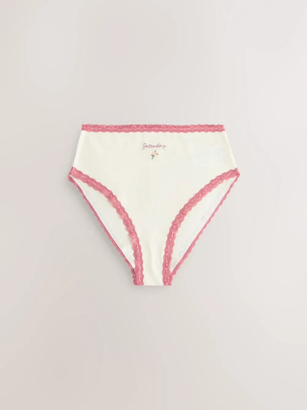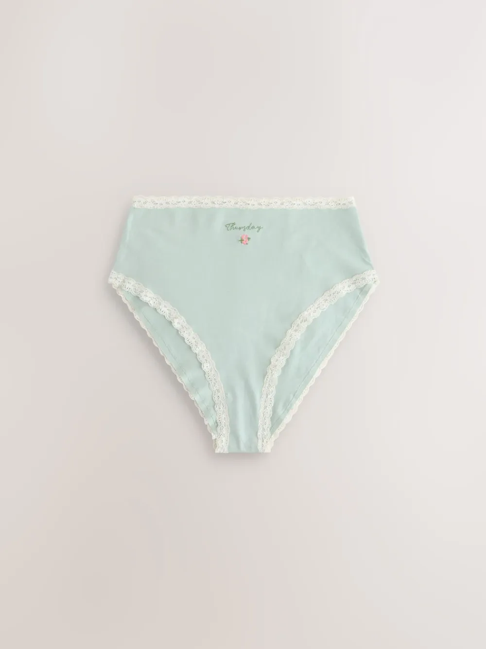 Next High Waist High Leg Cotton and Lace Knickers 7 Pack Days Of The Week Best